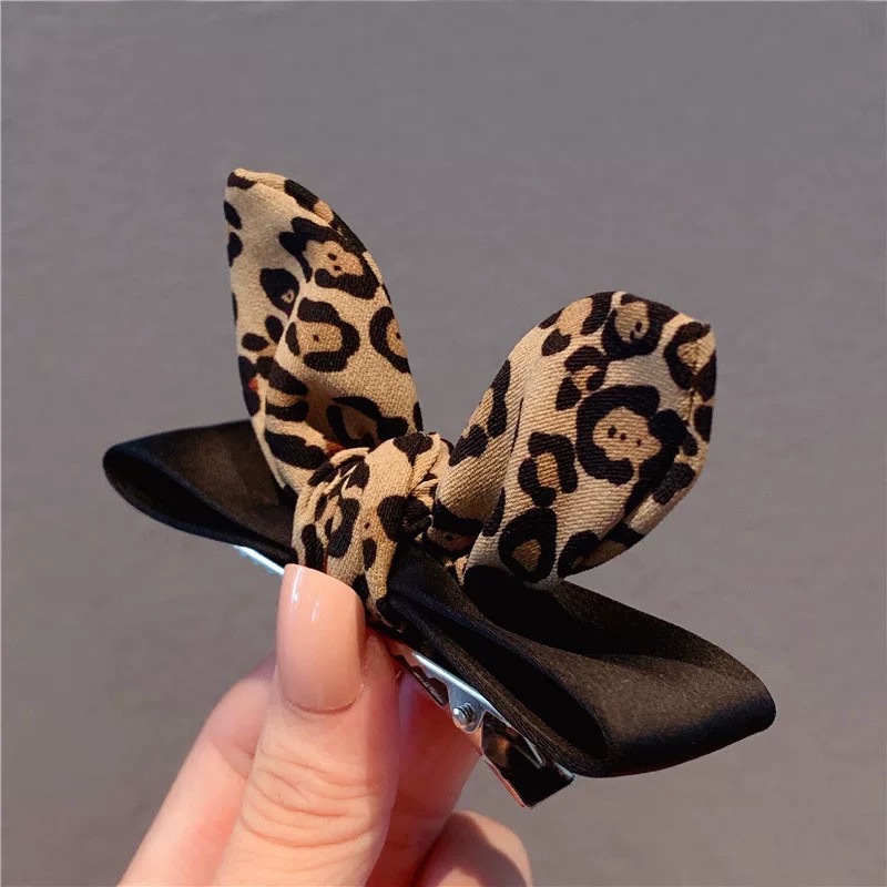 프랑스 스타일 레오파드 무늬 토끼 귀 헤어핀 여성 한 단어 뱅 탑 클립 한국 깨진 헤어 사이드 헤어핀 사이버 축하 클립 헤드