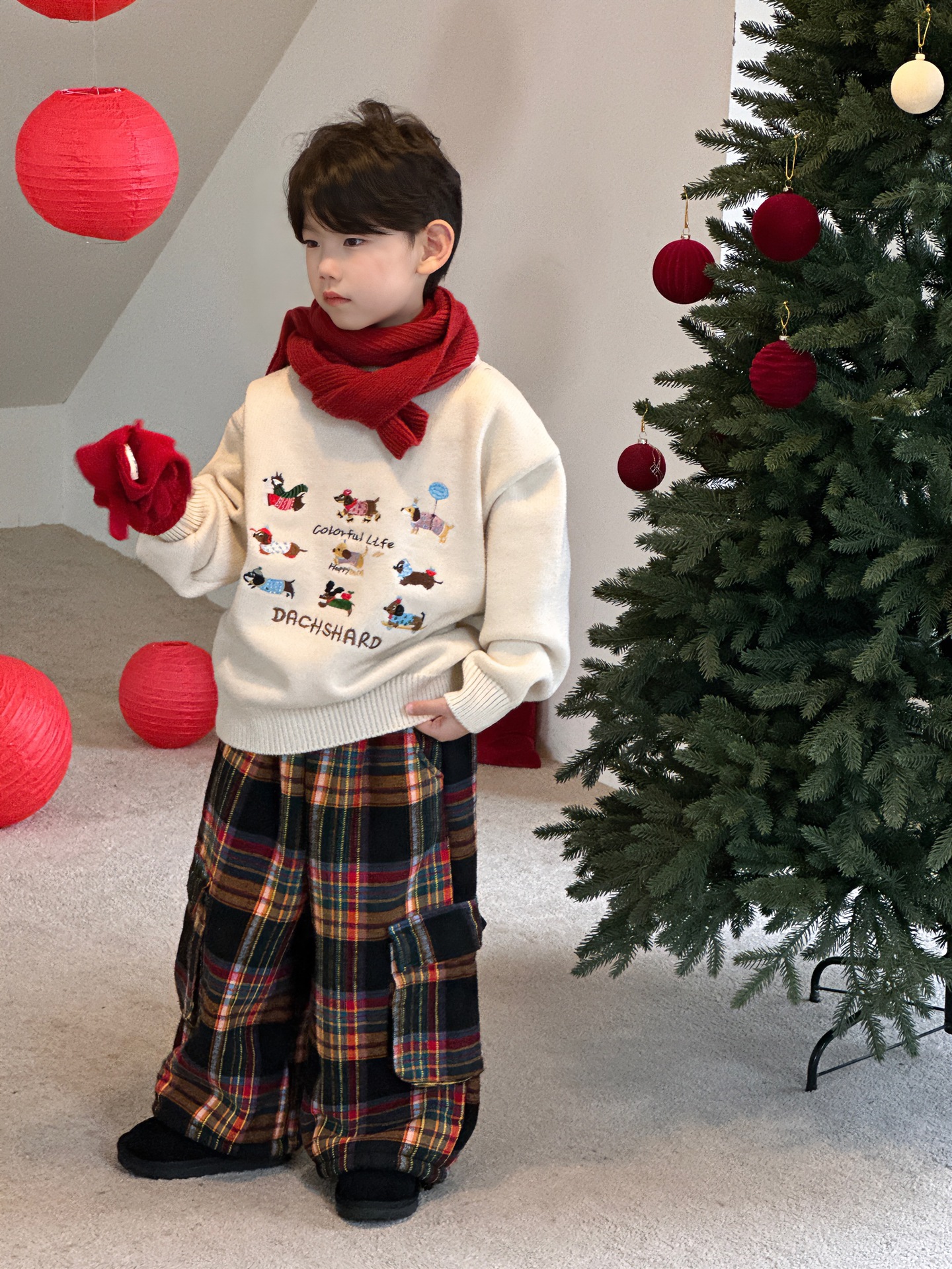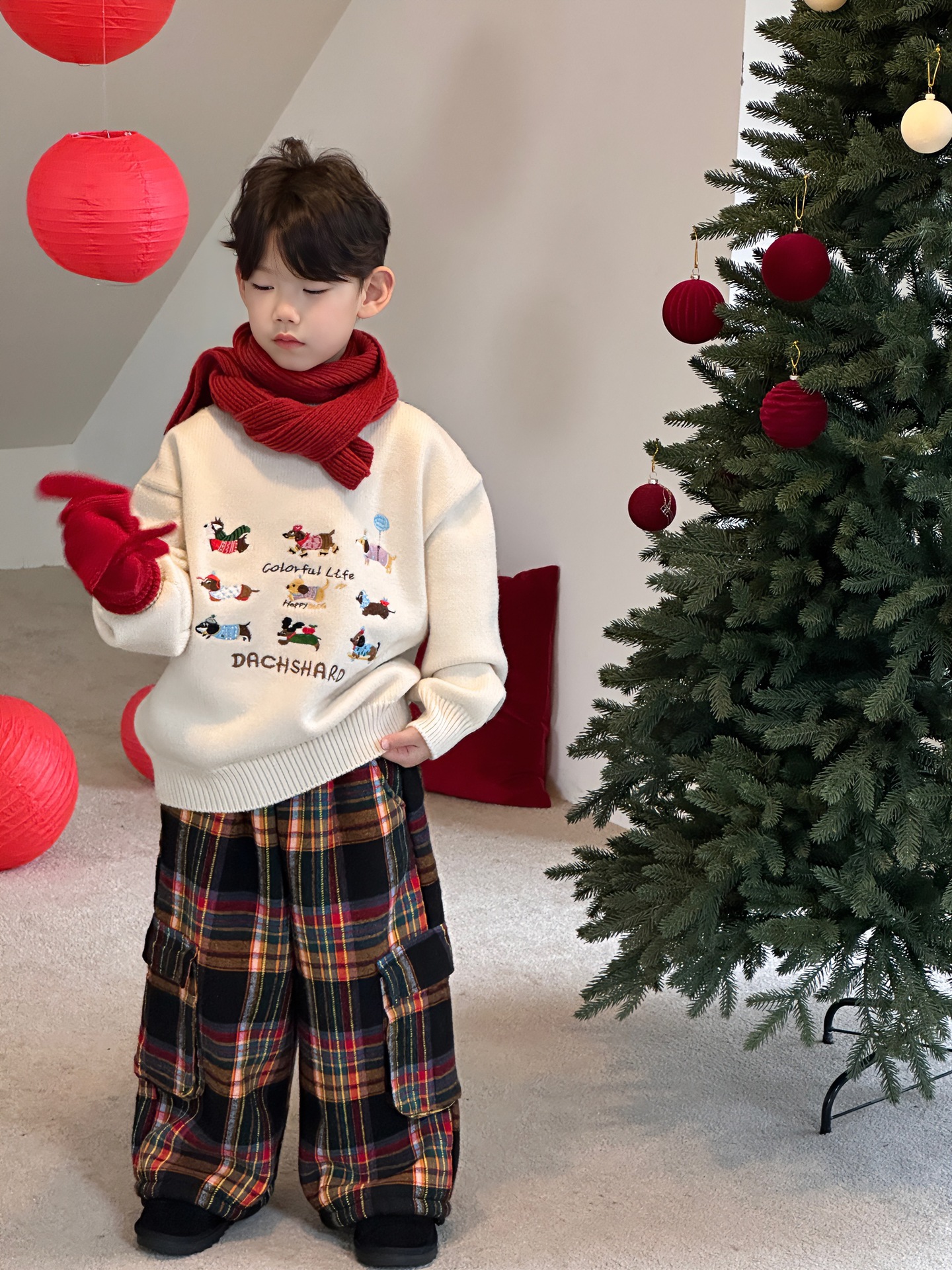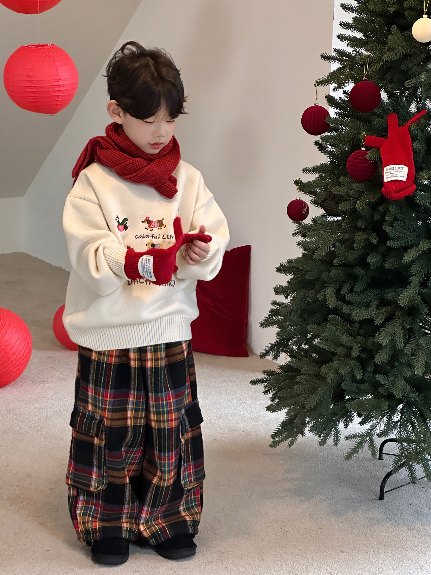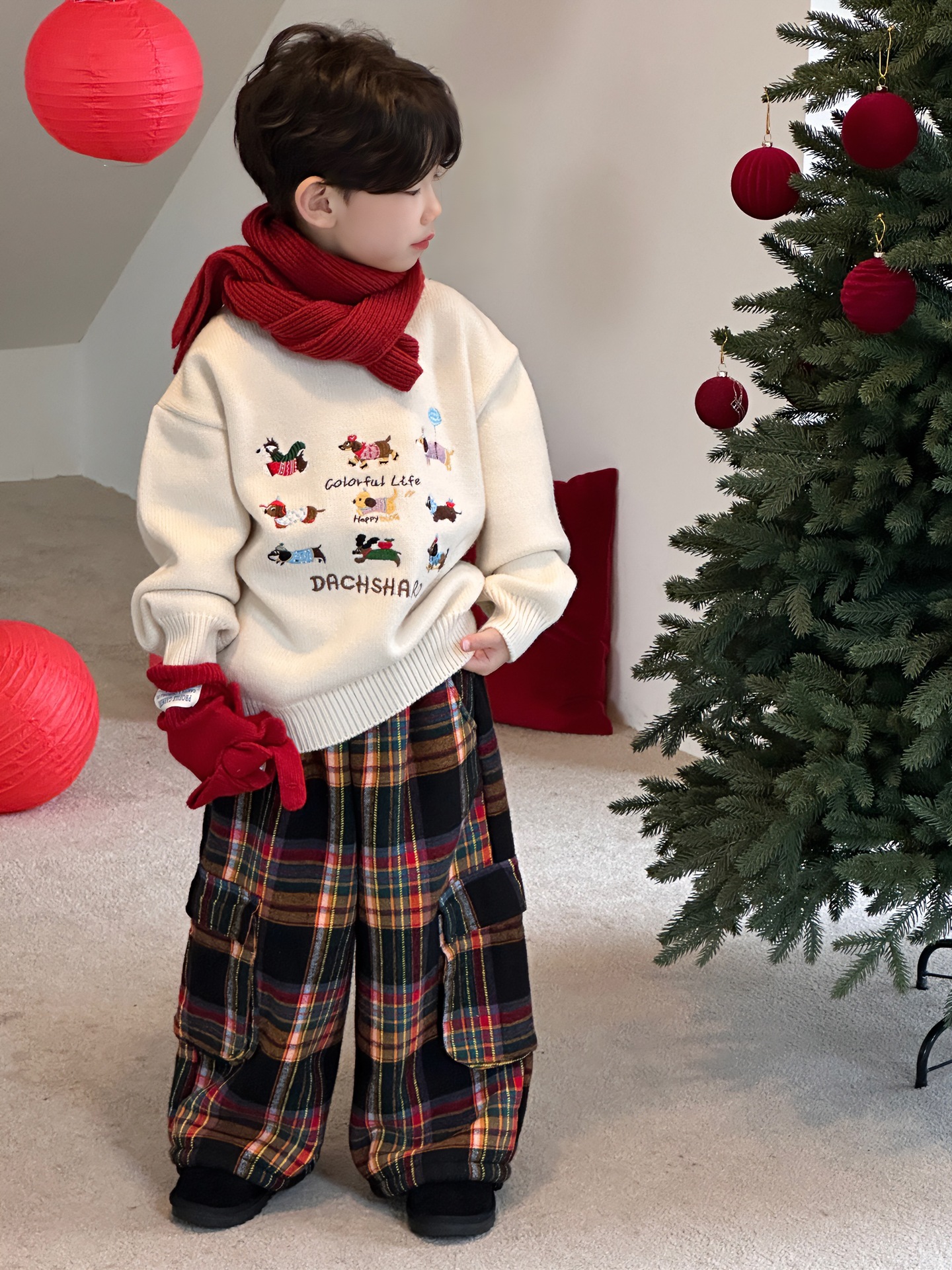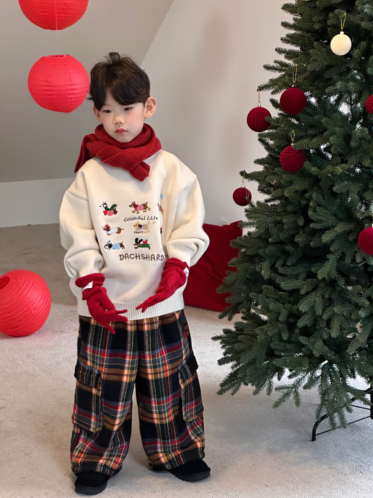 Tairu 2024 겨울 새 한국 어린이 설날 만화 따뜻한 풀오버 두꺼운 스웨터 소년의 서양식 탑스토어 가기