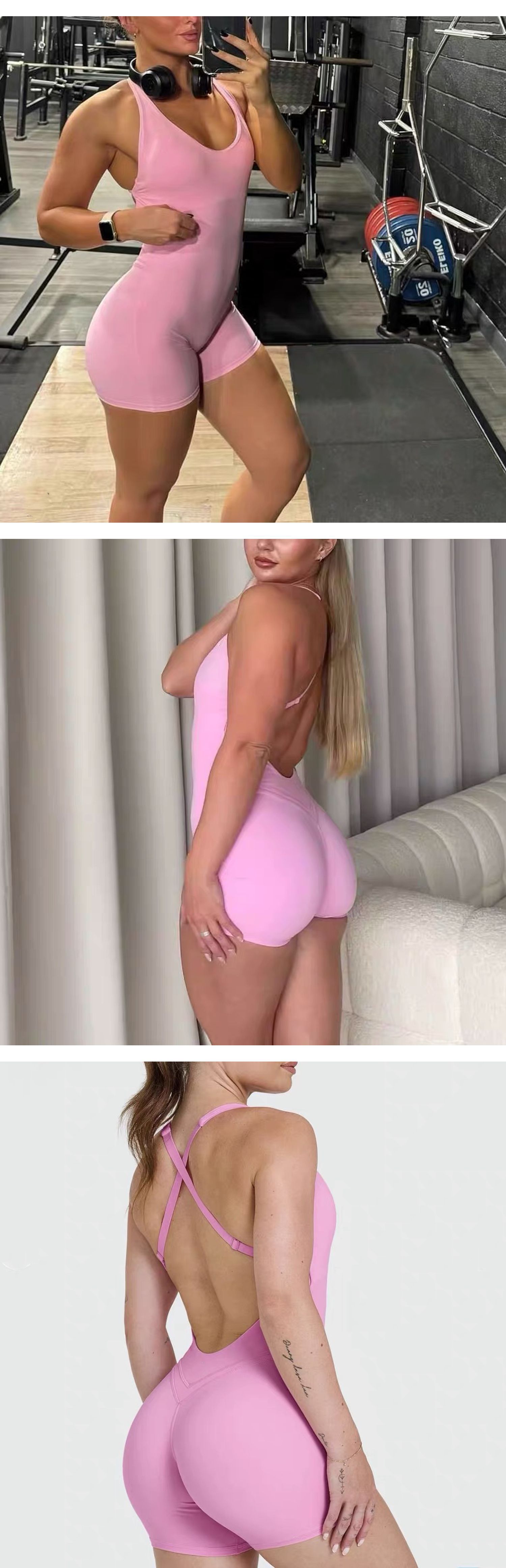 여성용 크로스보더 신상 요가 백리스 원피스, 가슴 패드 내장, 고탄력 통기성, 모아주는 효과, 속건성 스포츠 피트니스 원피스스토어 가기