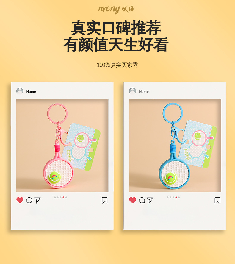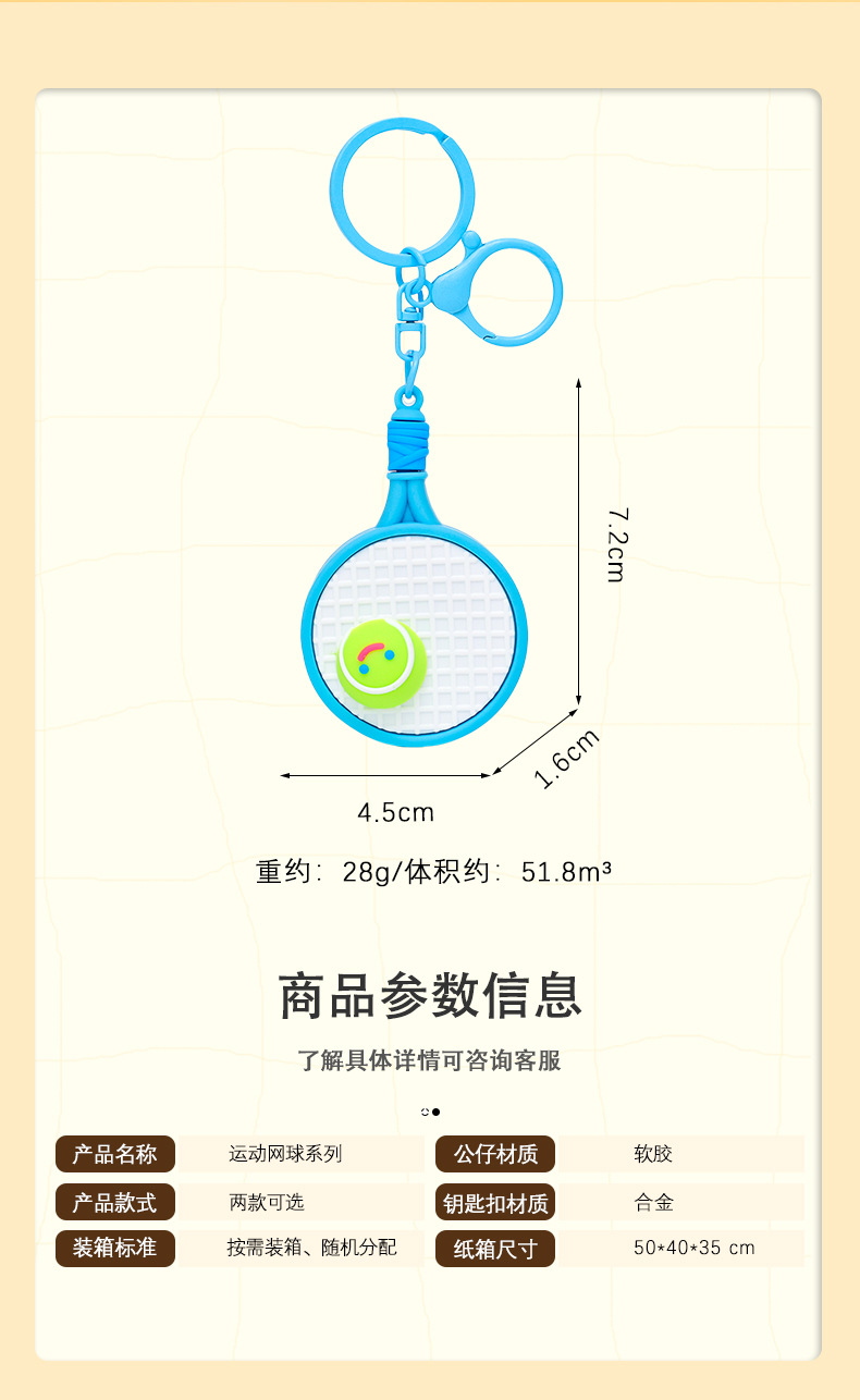 국경 간 폭발 창조적 인 테니스 라켓 키 체인 학교 가방 펜던트 도매 스포츠 작은 선물 테니스 키 체인