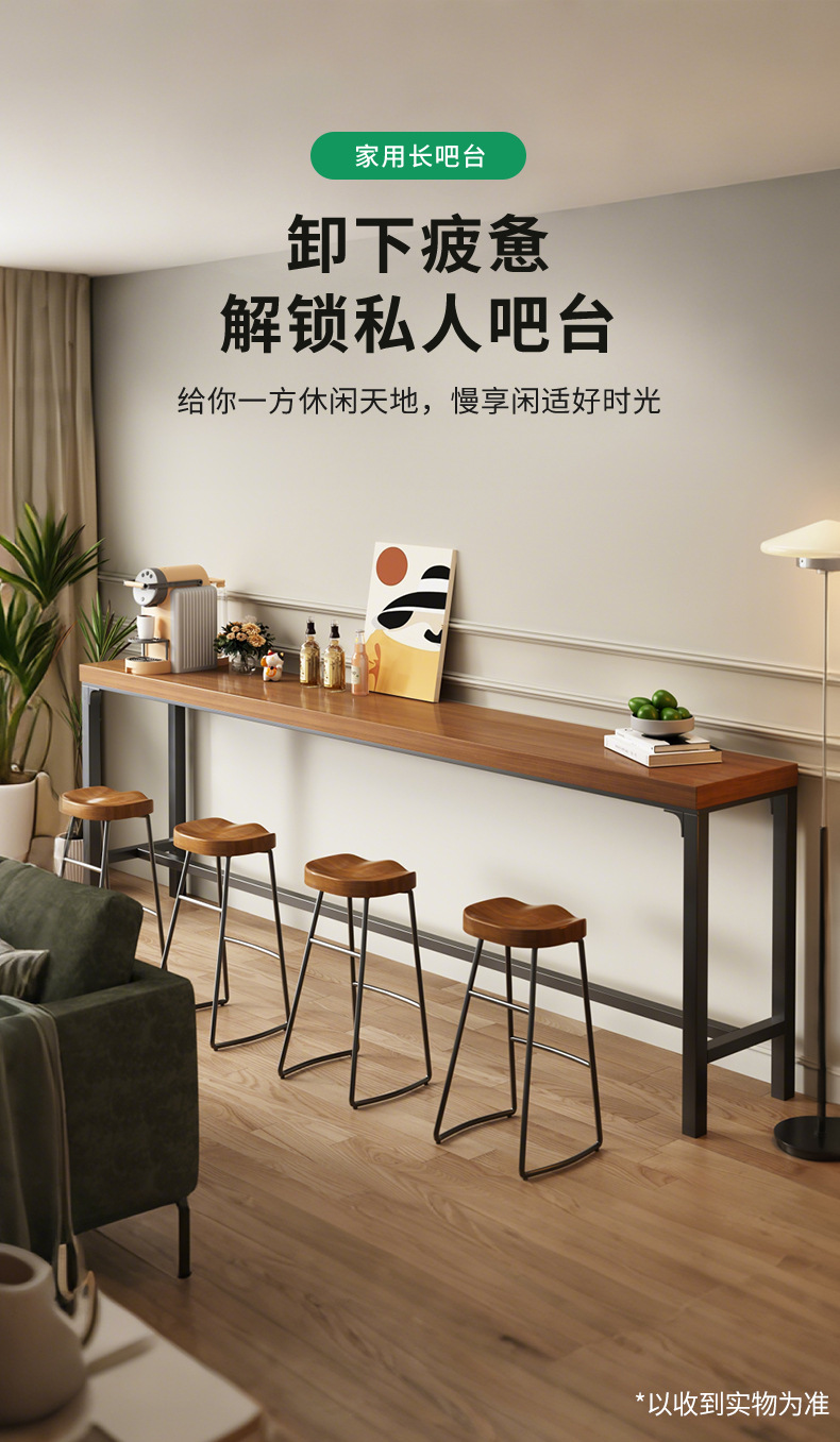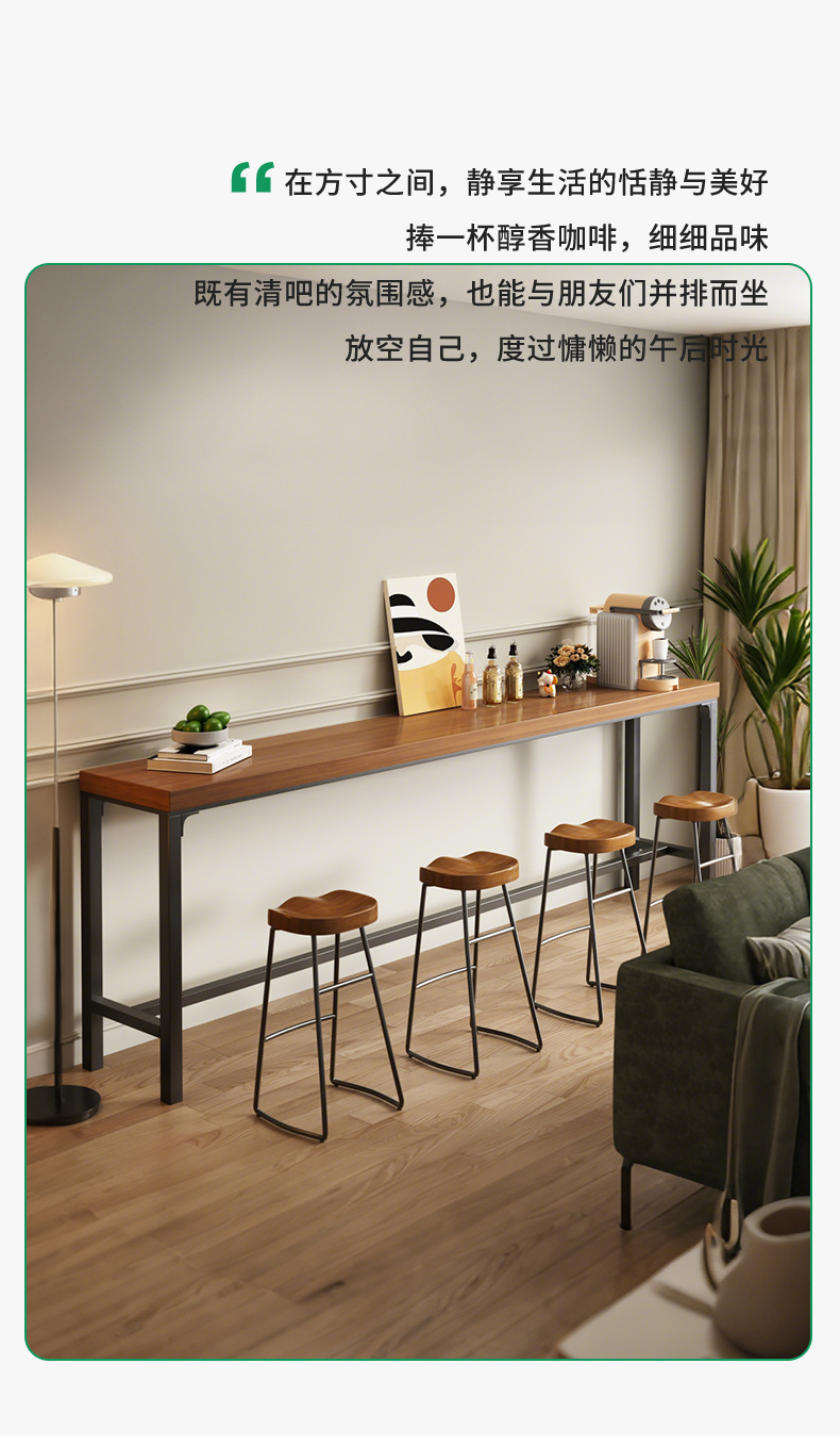实木吧台桌家用靠墙隔断窄桌子一字长条餐桌客厅咖啡角阳台置物架