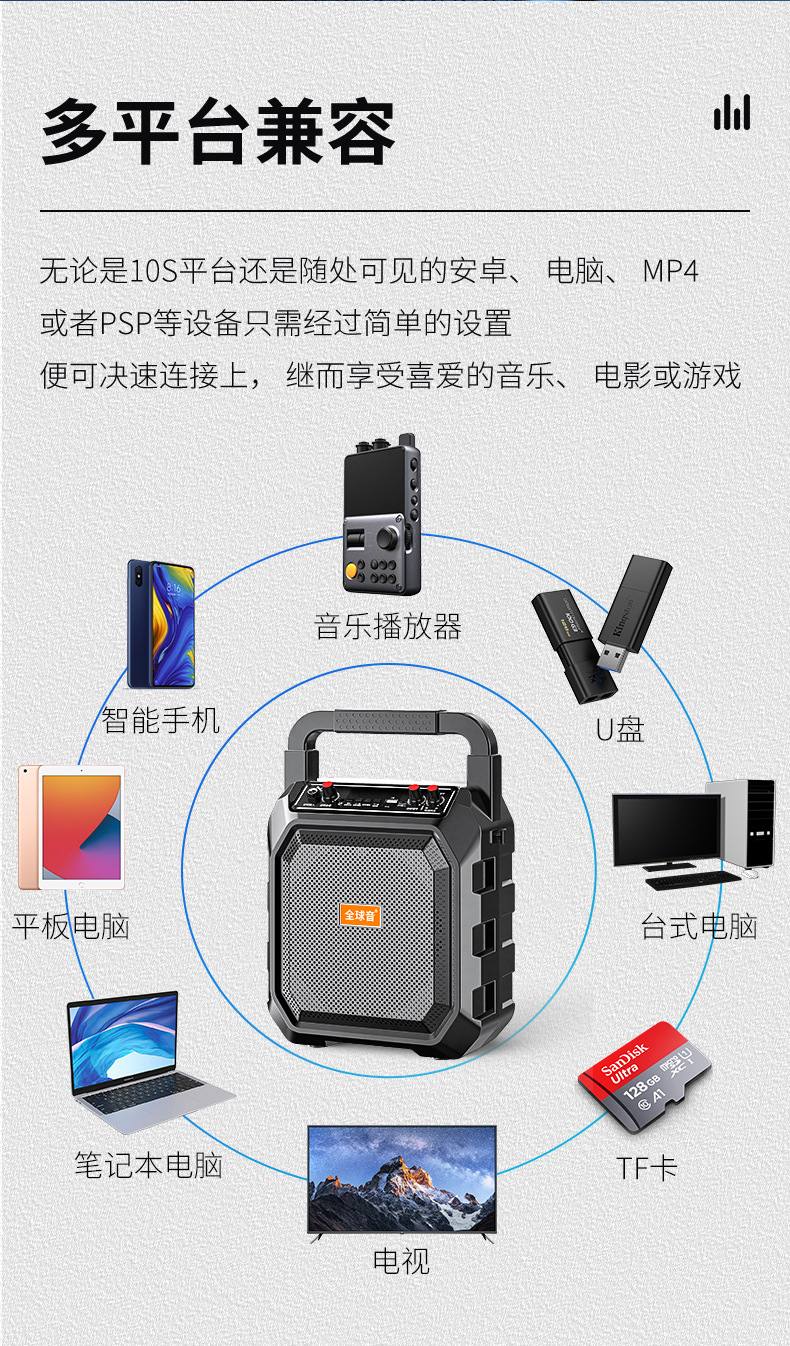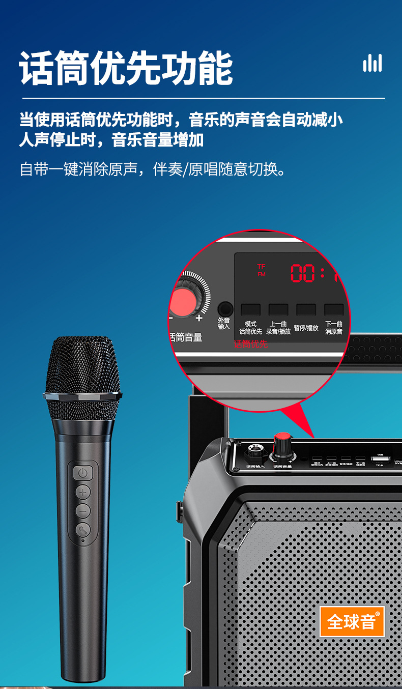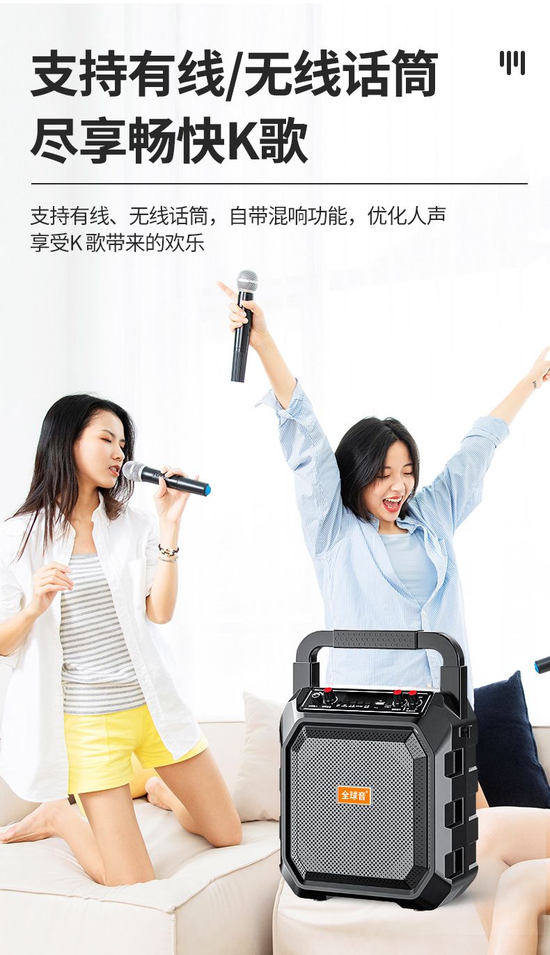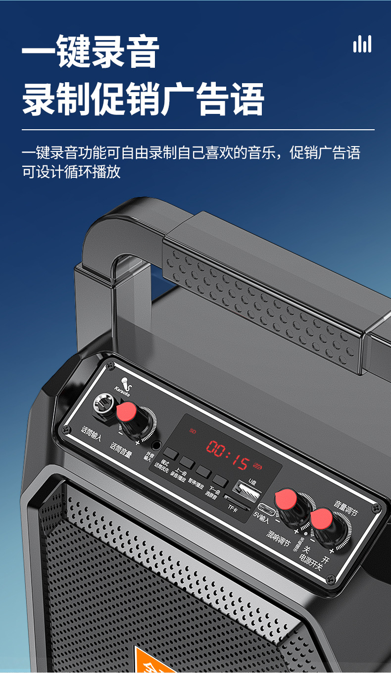 야외 스퀘어 댄스 휴대용 블루투스 스피커 K-song 충전식 휴대용 오디오 대형 스피커 마이크 스톨스토어 가기