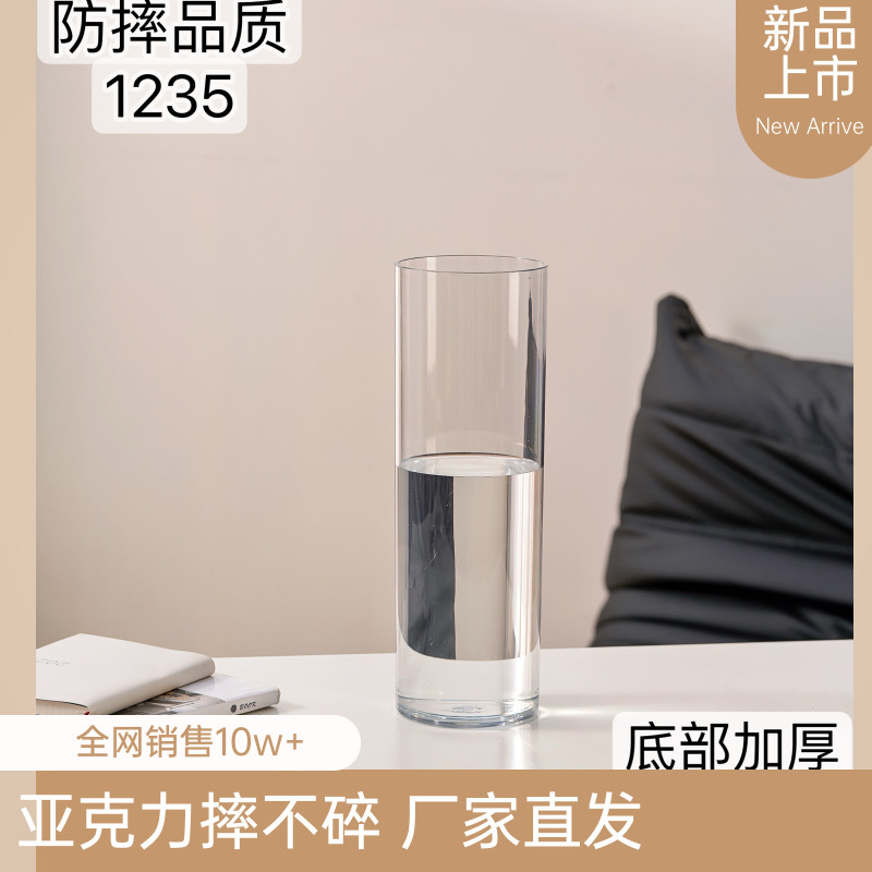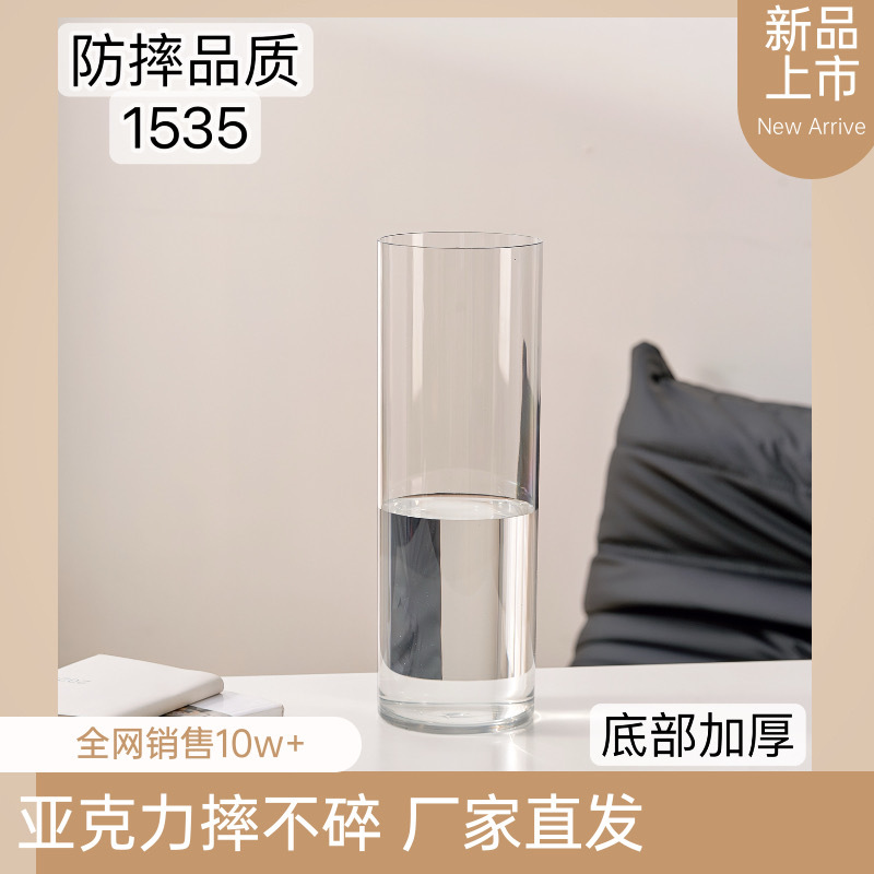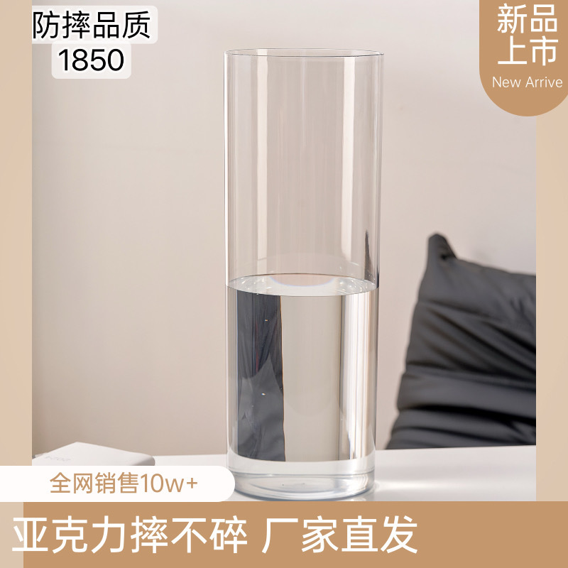 꽃병 장식품 거실 꽃 배열 아크릴 유리 물 풍부한 대나무 꽃 투명 스트레이트 플라스틱 각성 버킷 대형스토어 가기