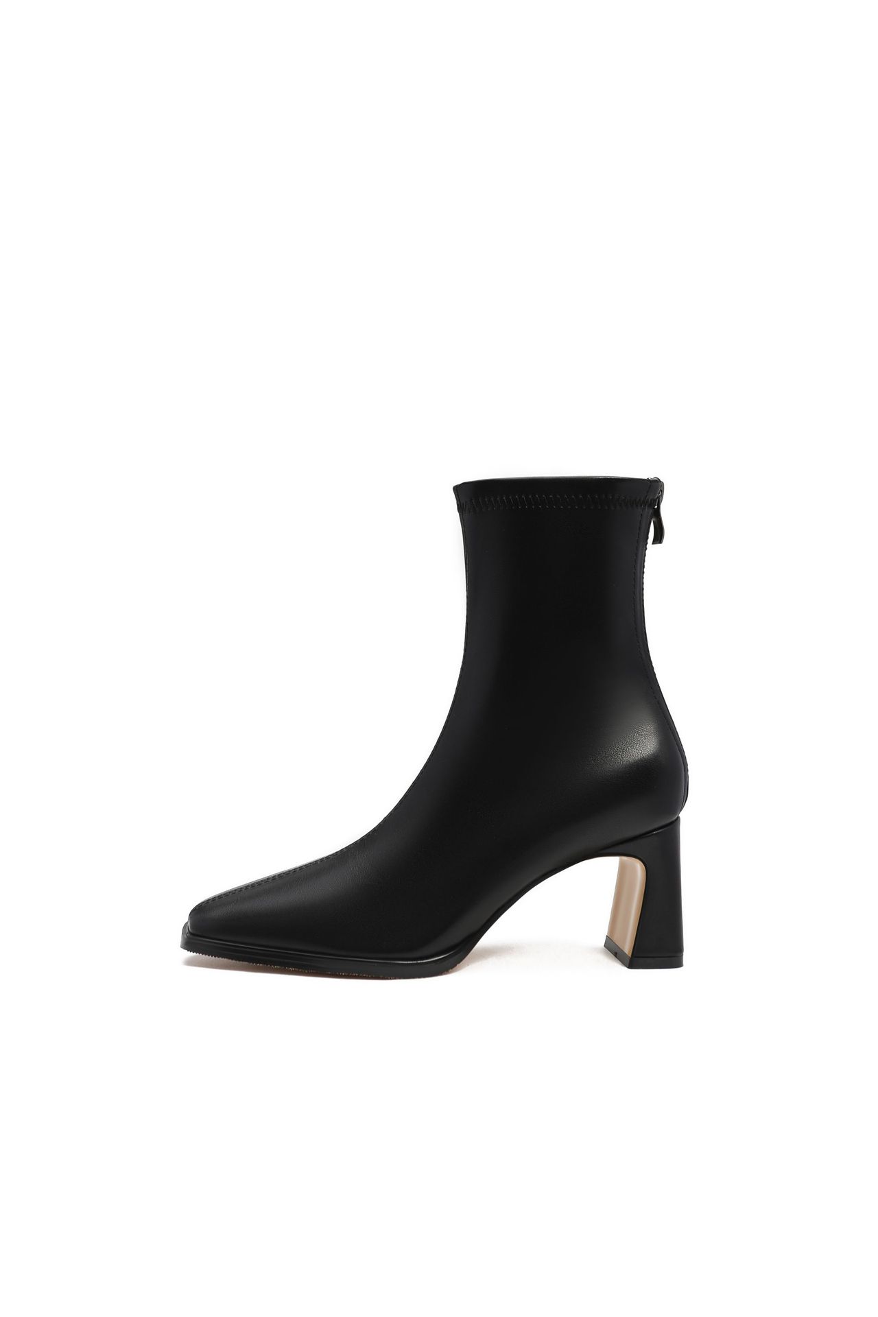 블랙 쇼트 부츠 여성용 하이힐 가을 및 겨울 뉴 기모 두꺼운 힐 프랑스 작은 발목 부츠 후면 지퍼 탄성 스퀘어 발가락 얇은 부츠스토어 가기