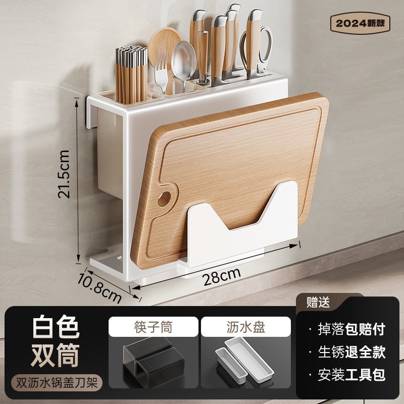 • 흰색 냄비 뚜껑 도마 칼 홀더 [배수 상자 포함]