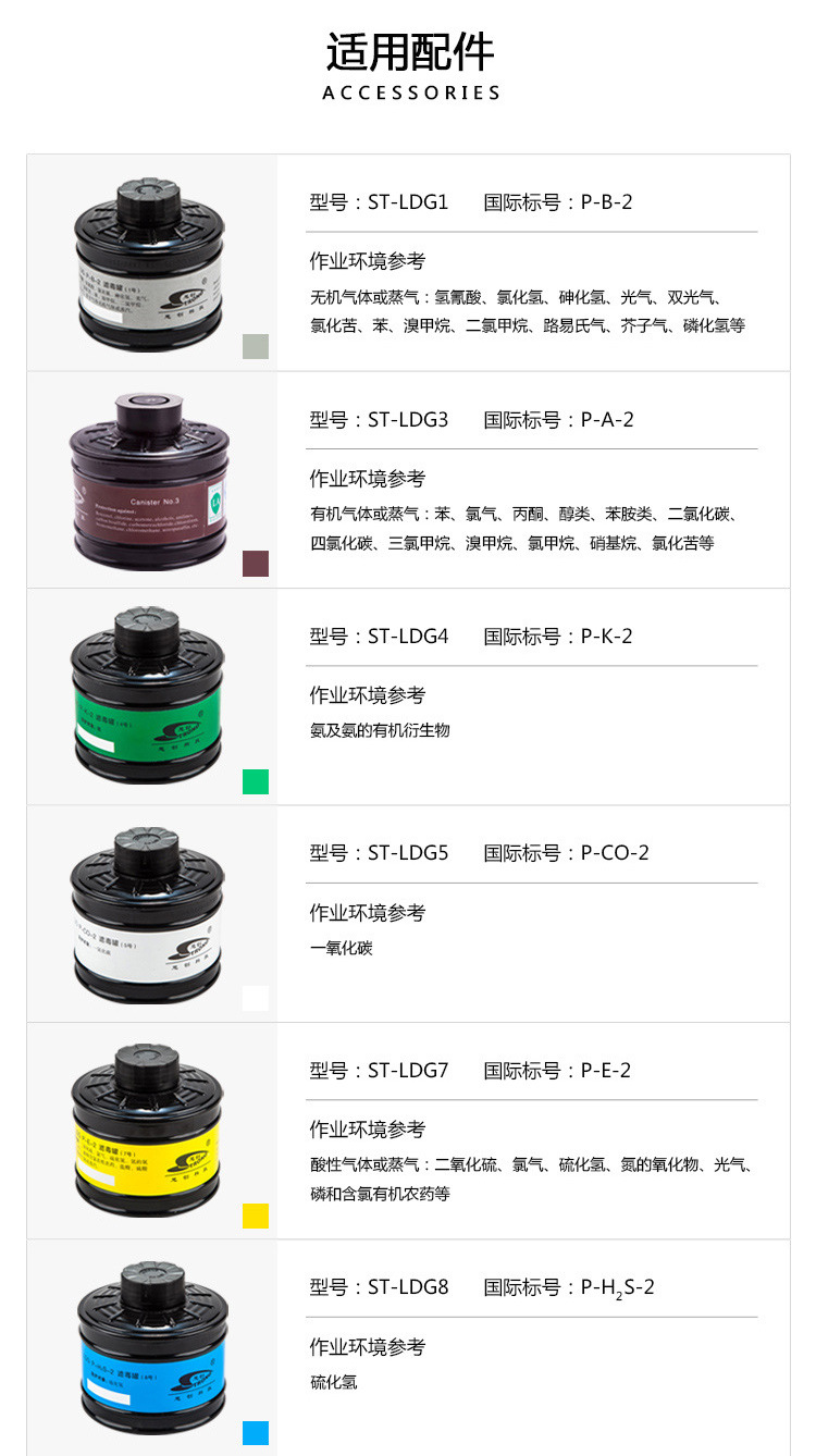 根据不同的环境选择1#、3#、4#、5#、7#滤毒盒;