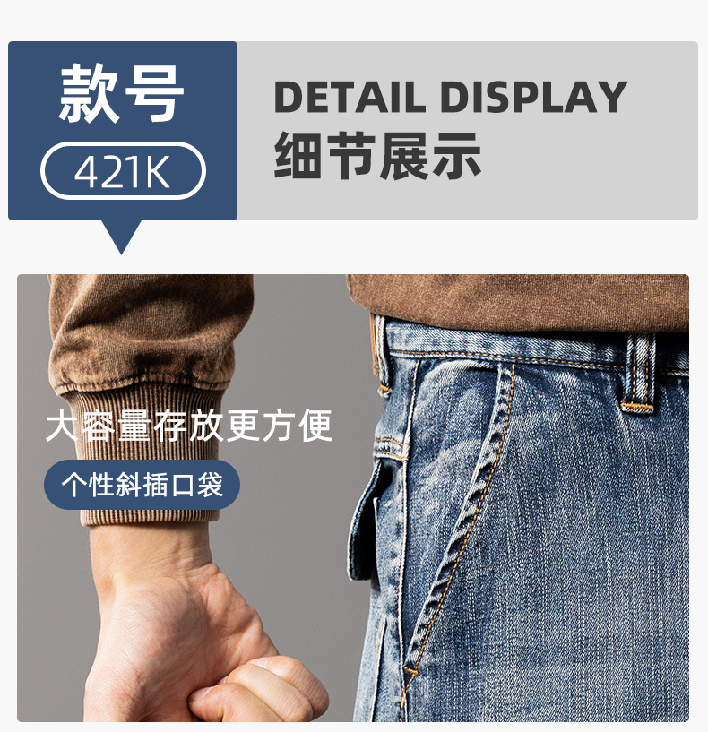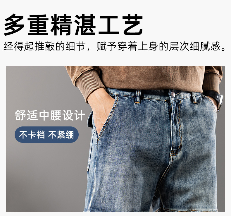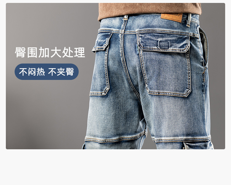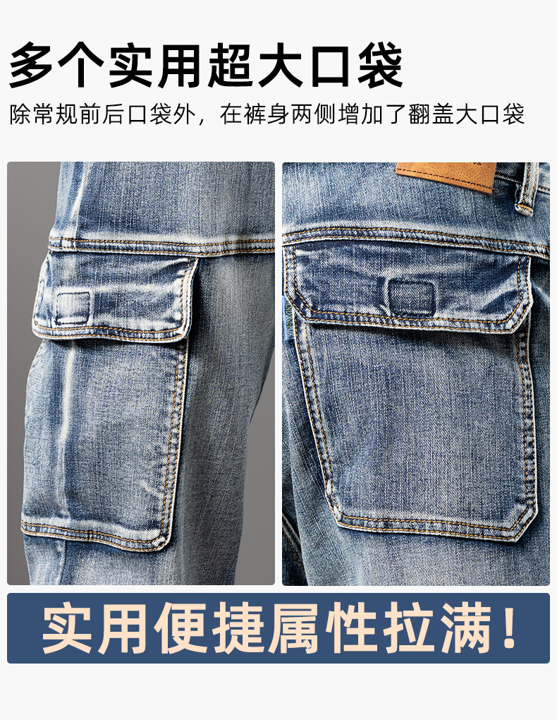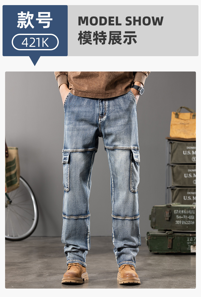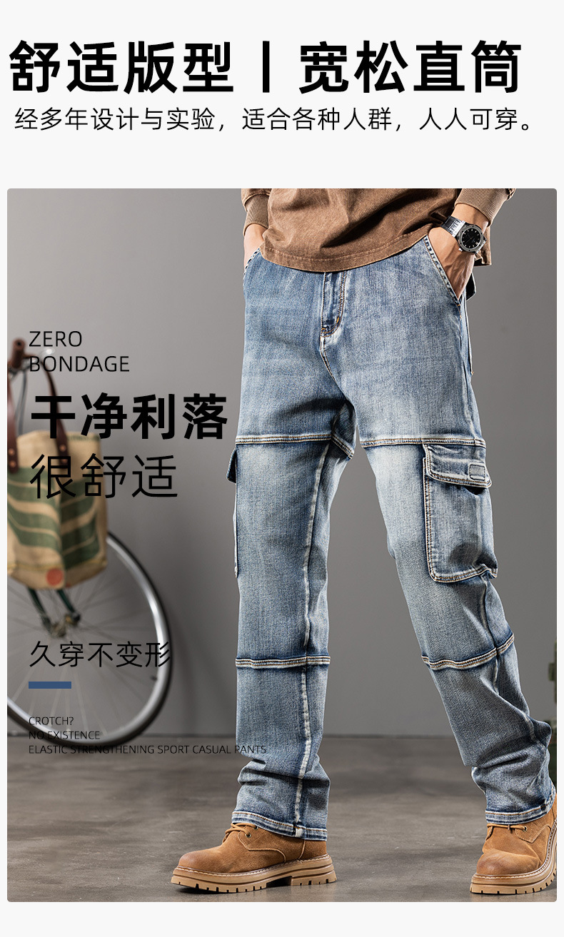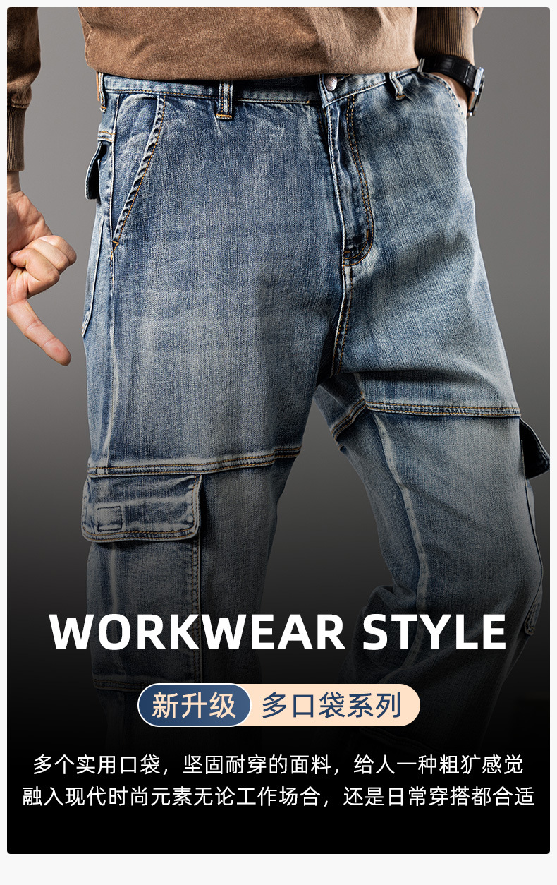 미국 레트로 스타일 헤비 워크웨어 멀티 포켓 데님 팬츠 남성용 루즈핏 스트레이트 빅사이즈 신축성 2025 가을 겨울 모델스토어 가기
