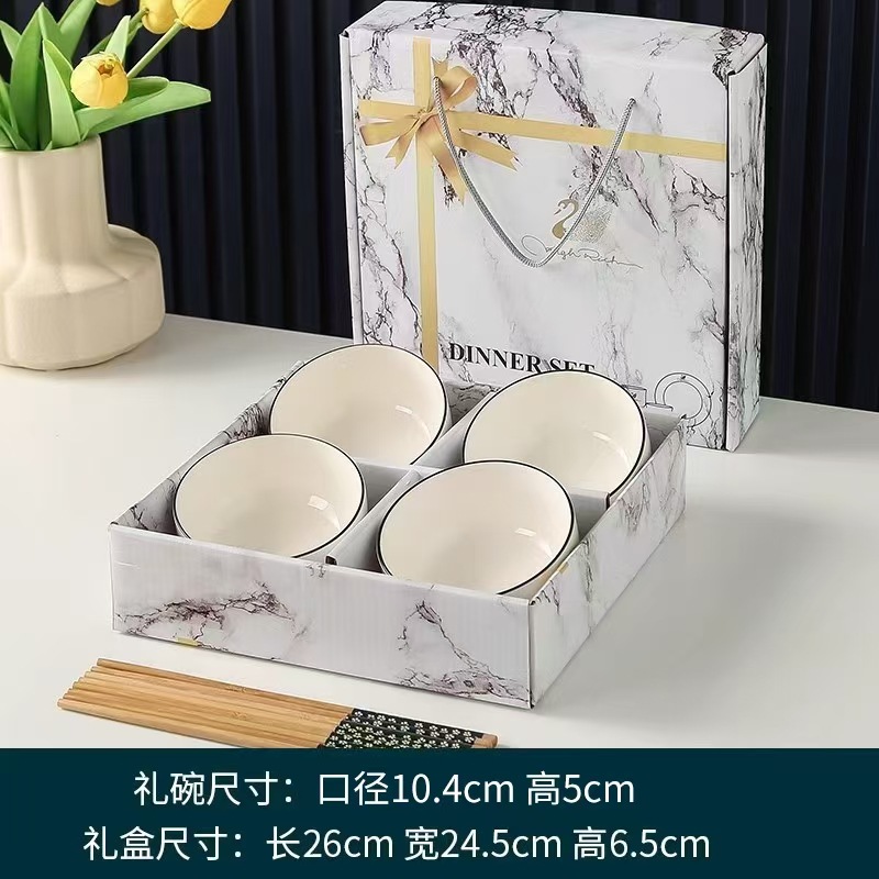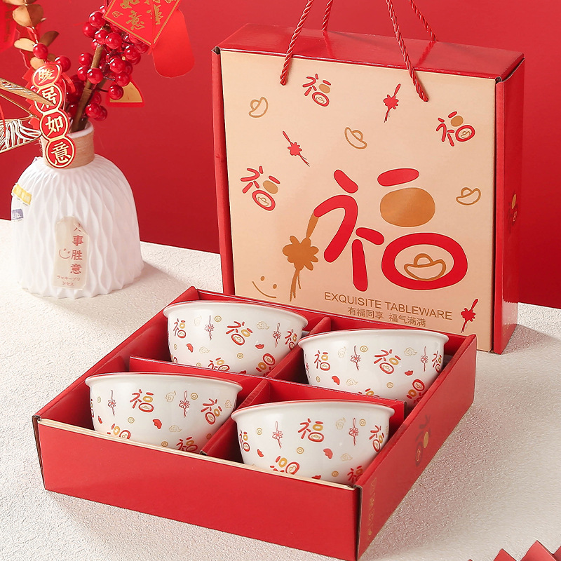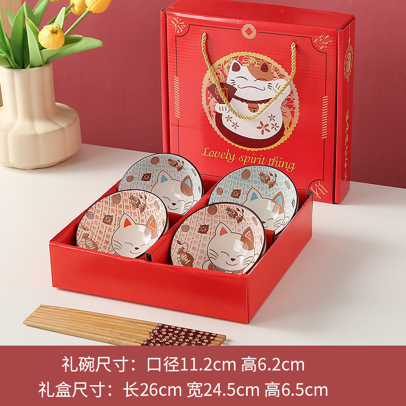 • 행운을 빌어요 그릇 4개 젓가락 4개 (선물 상자)