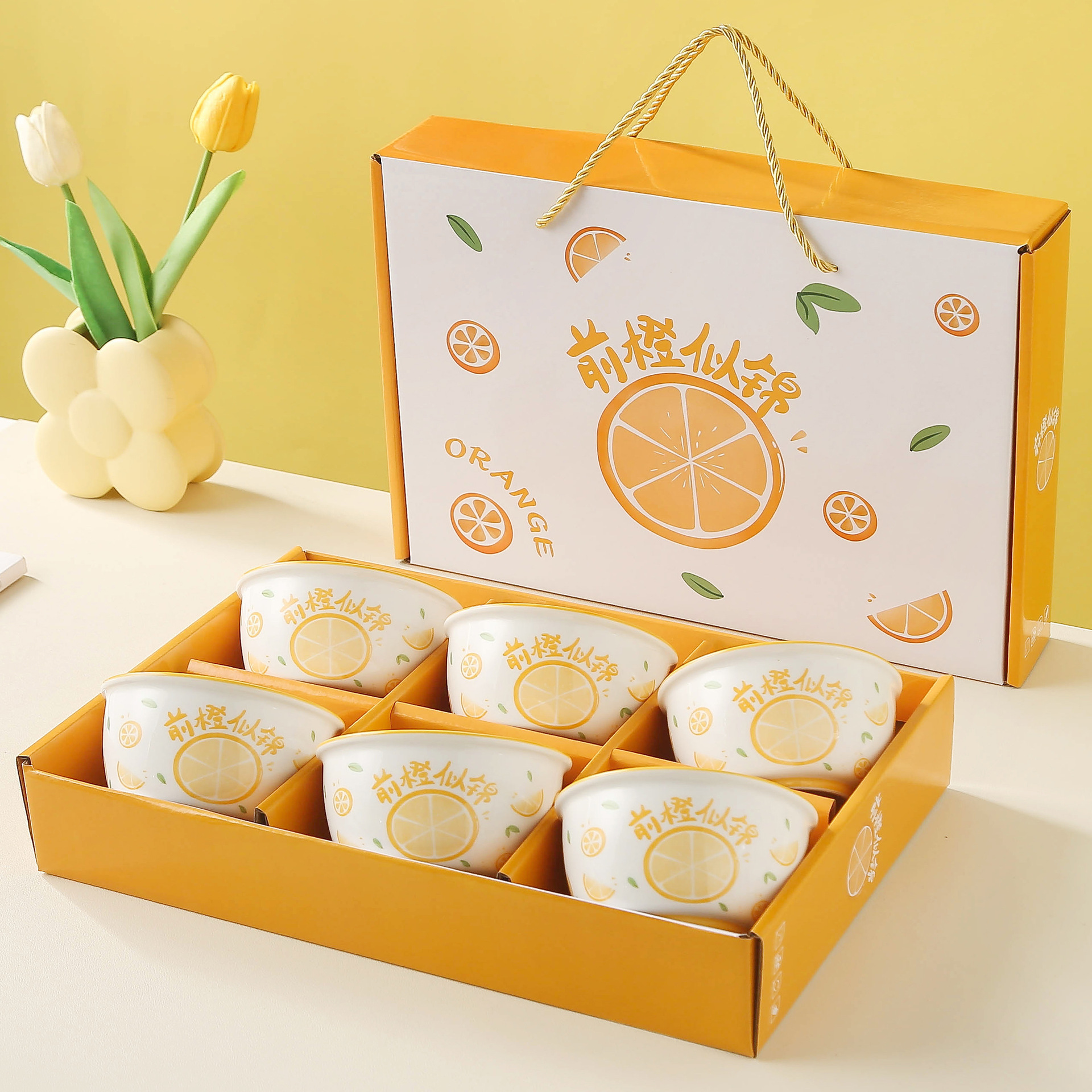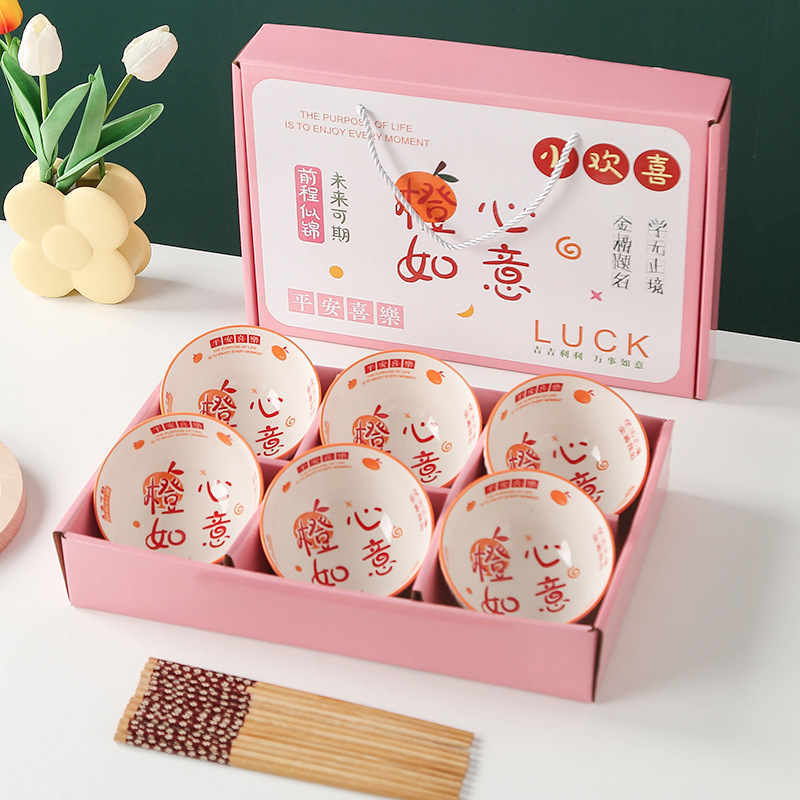 • 오렌지 하트 루이 그릇 6개 젓가락 6개 (핑크색 선물 상자)