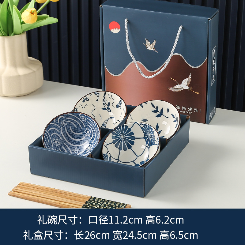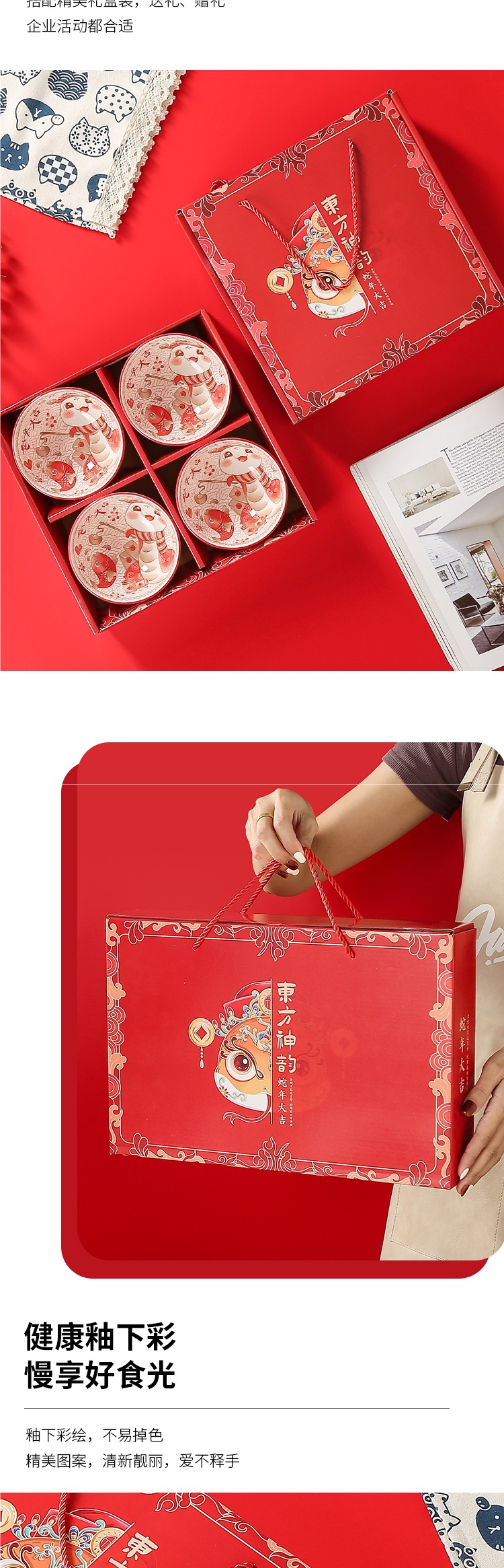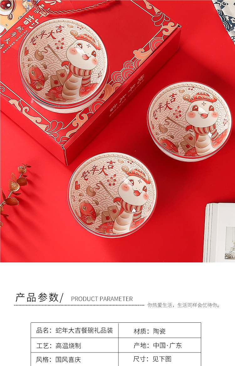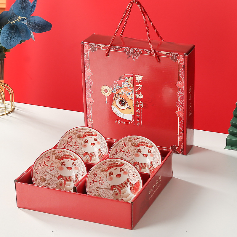 뱀 선물 그릇 세트 가정용 식사 세트 그릇과 접시 파란색과 흰색 도자기 그릇 세라믹 그릇과 젓가락 세트 식기 선물 상자스토어 가기