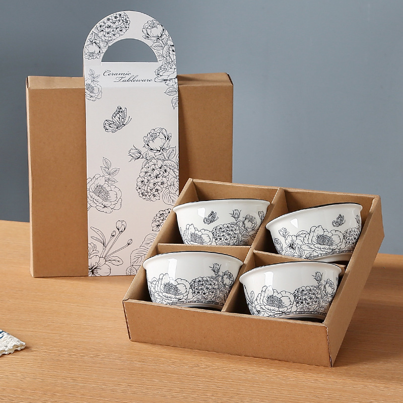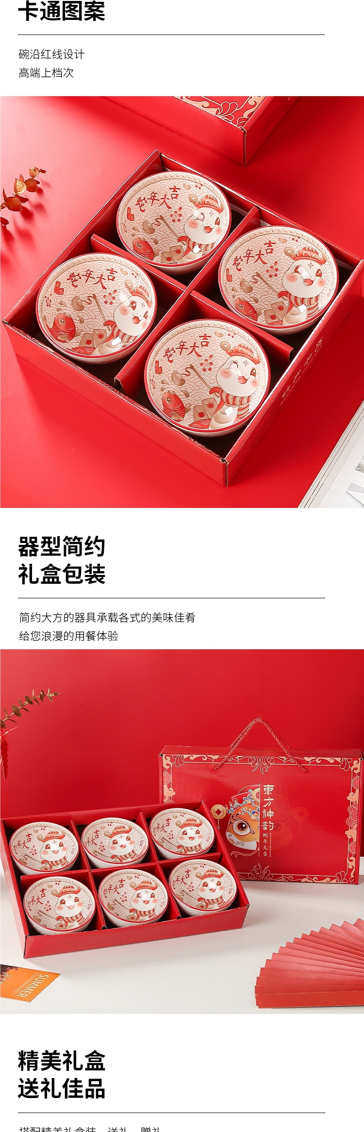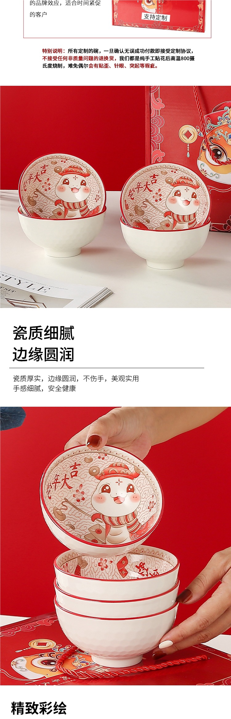 뱀 선물 그릇 세트 가정용 식사 세트 그릇과 접시 파란색과 흰색 도자기 그릇 세라믹 그릇과 젓가락 세트 식기 선물 상자스토어 가기