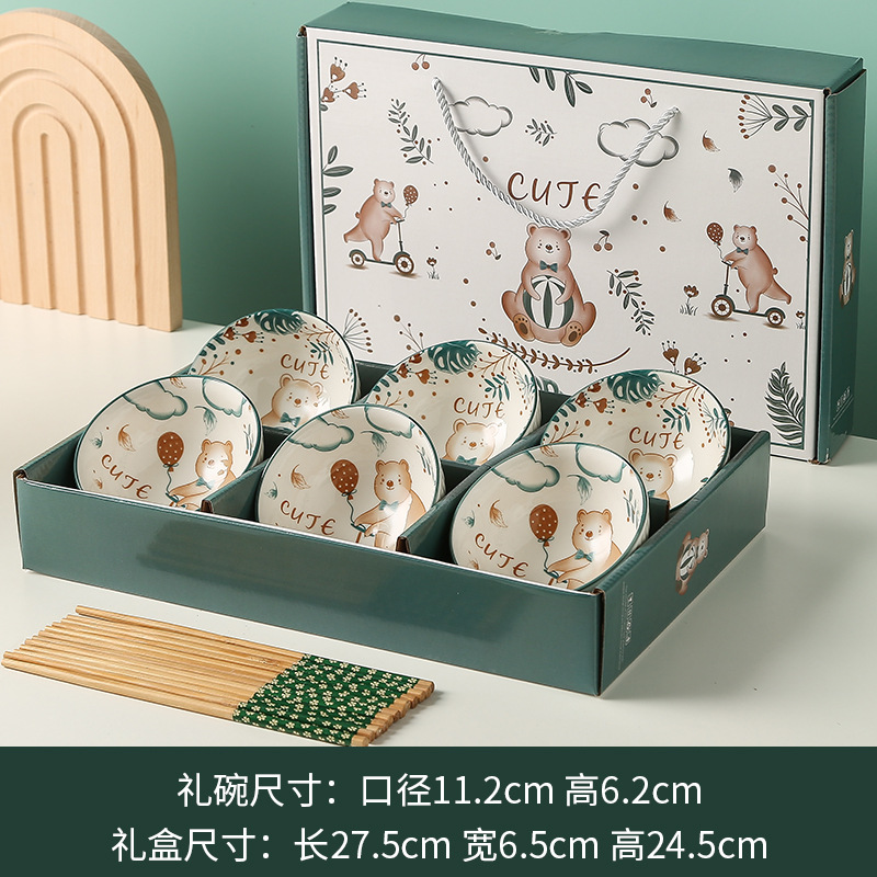 • 포레스트 스케이트보드 베어 그릇 6개 젓가락 6개 (선물 상자)