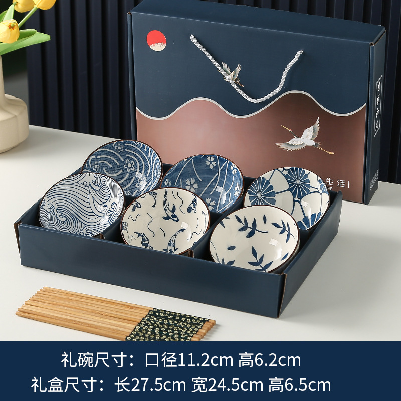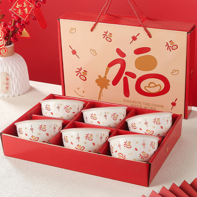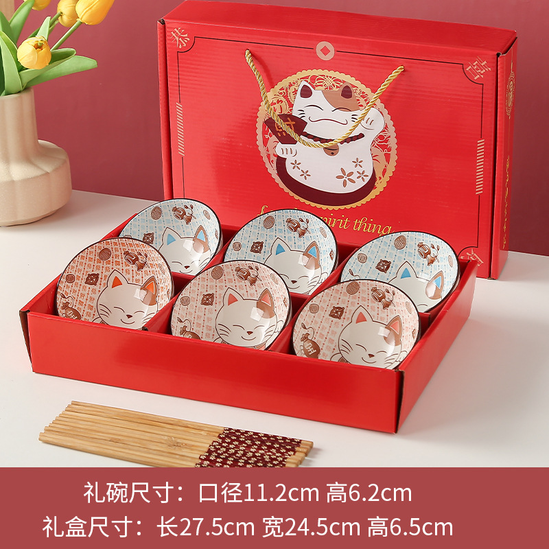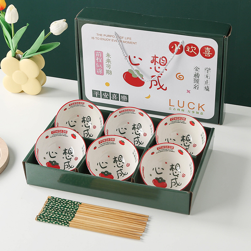 • 행운을 빌어요 그릇 6개와 젓가락 6개 (선물 상자)