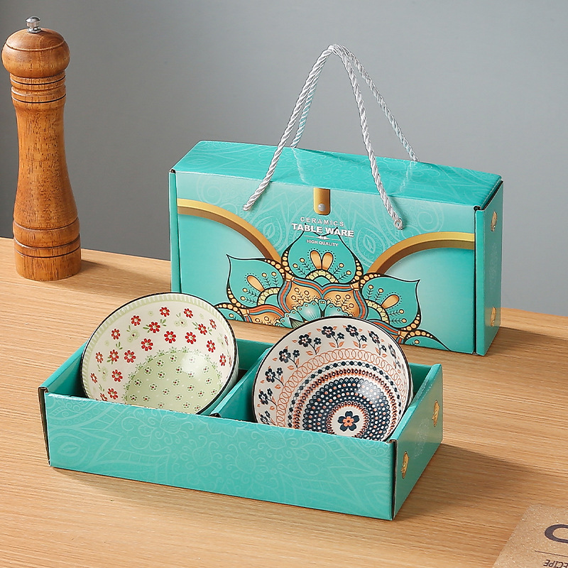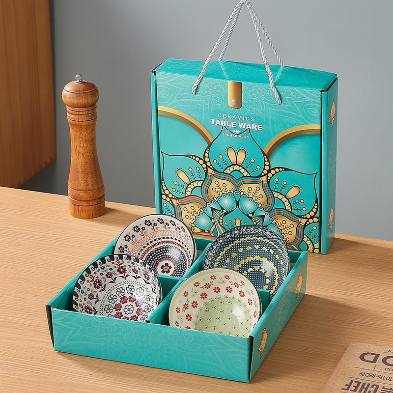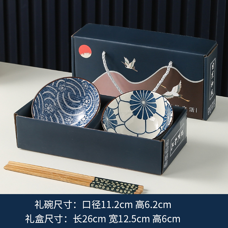 뱀 선물 그릇 세트 가정용 식사 세트 그릇과 접시 파란색과 흰색 도자기 그릇 세라믹 그릇과 젓가락 세트 식기 선물 상자