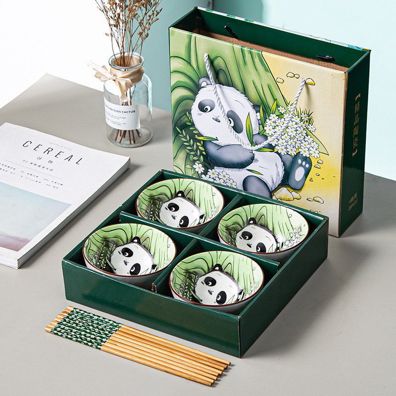 • 팬더 그릇 4개와 젓가락 4개 (선물 상자)