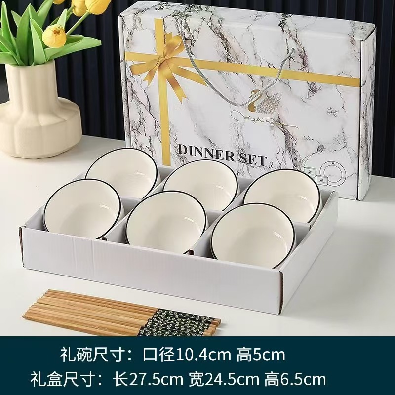 • 오프화이트, 블랙라인, 그릇 6개, 젓가락 6개(선물박스)