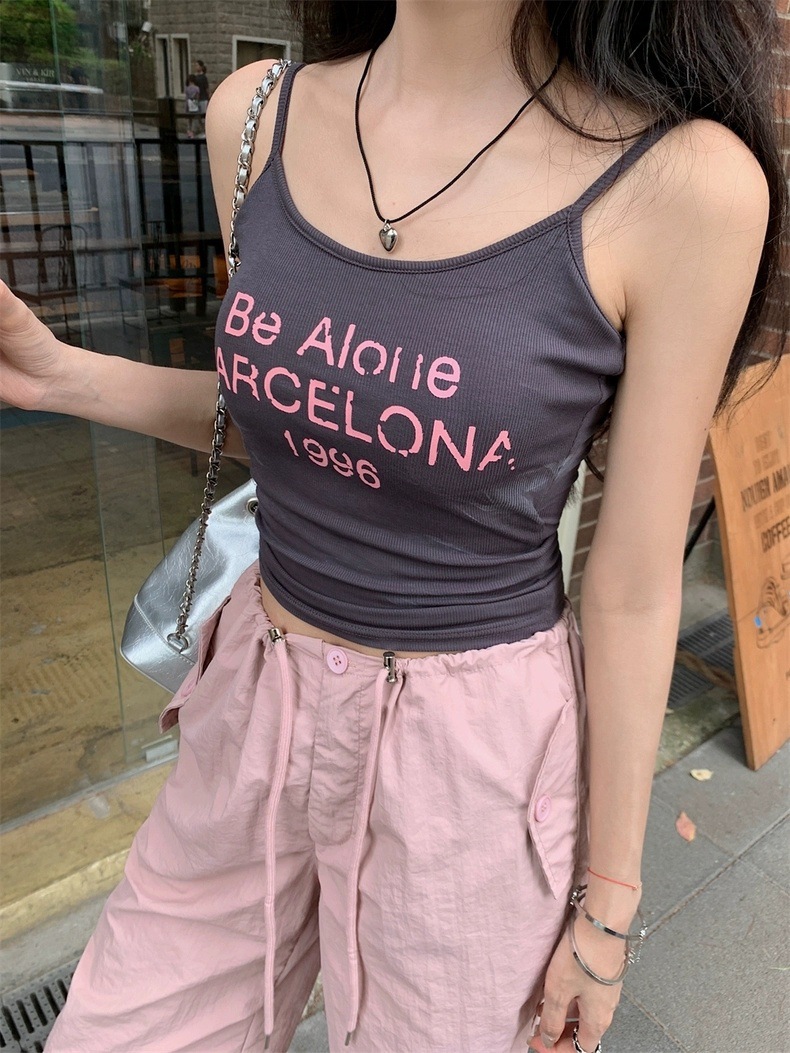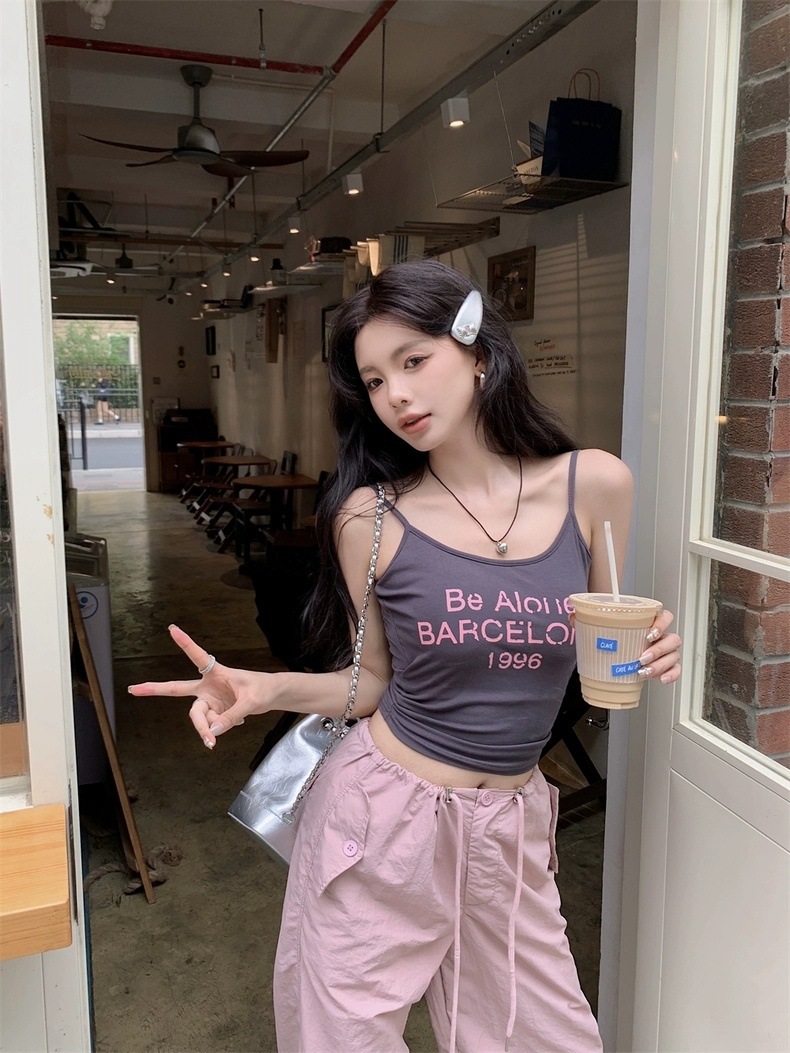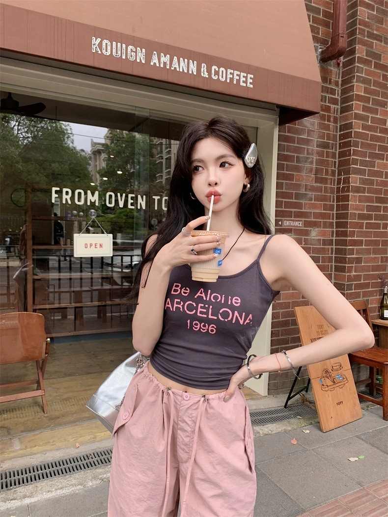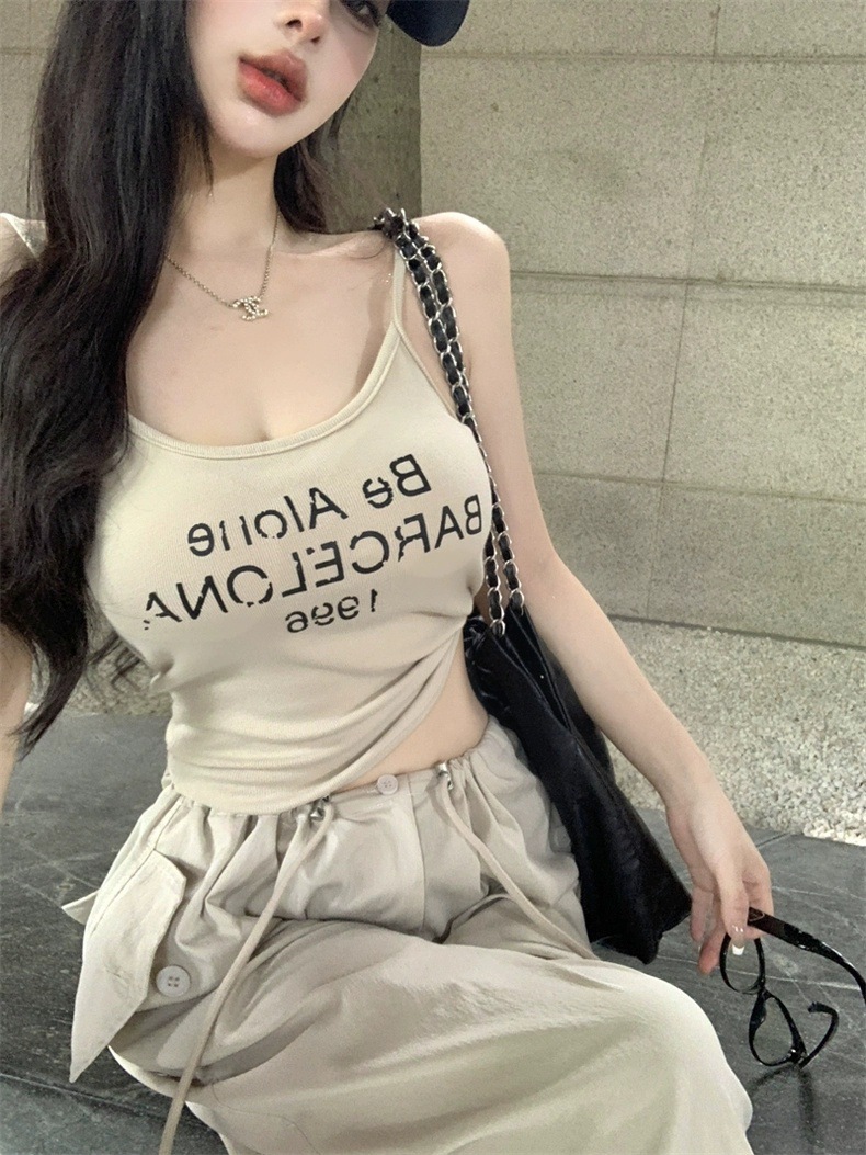 Sweet Hot Girl Pure Desire Letter Butterfly Heart Camisole 여성 여름 신작 슬림핏 아우터웨어 이너탑
