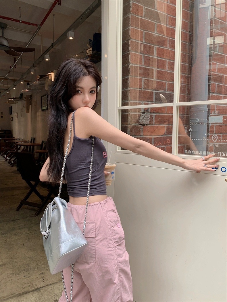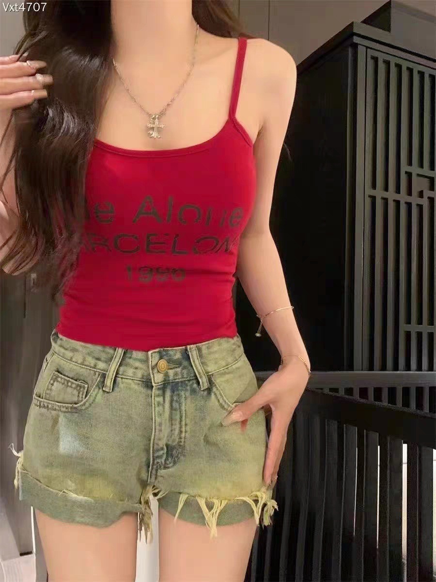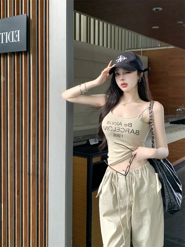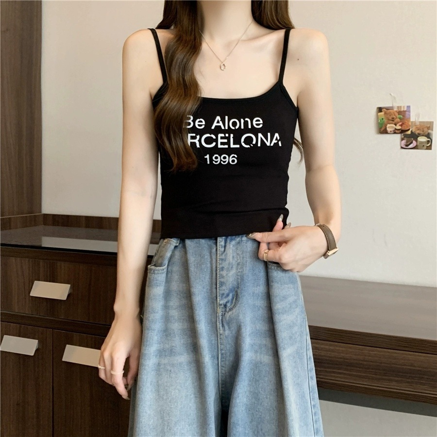 Sweet Hot Girl Pure Desire Letter Butterfly Heart Camisole 여성 여름 신작 슬림핏 아우터웨어 이너탑