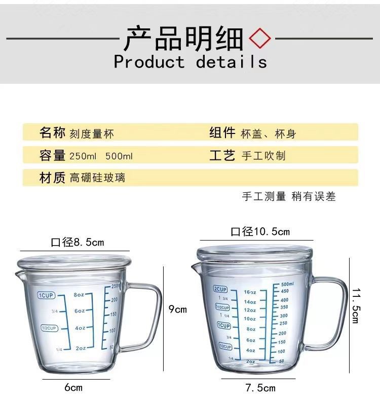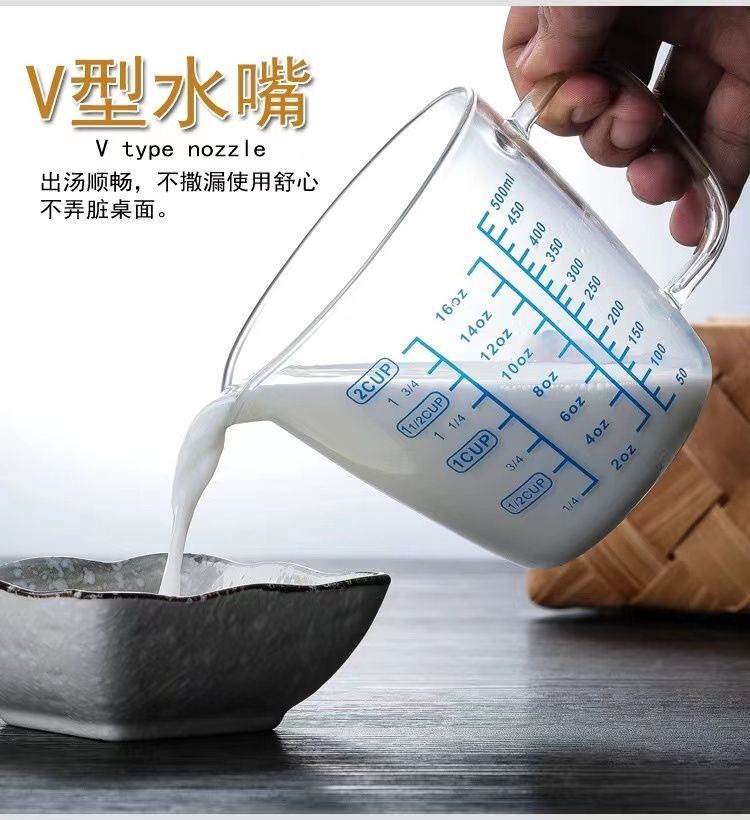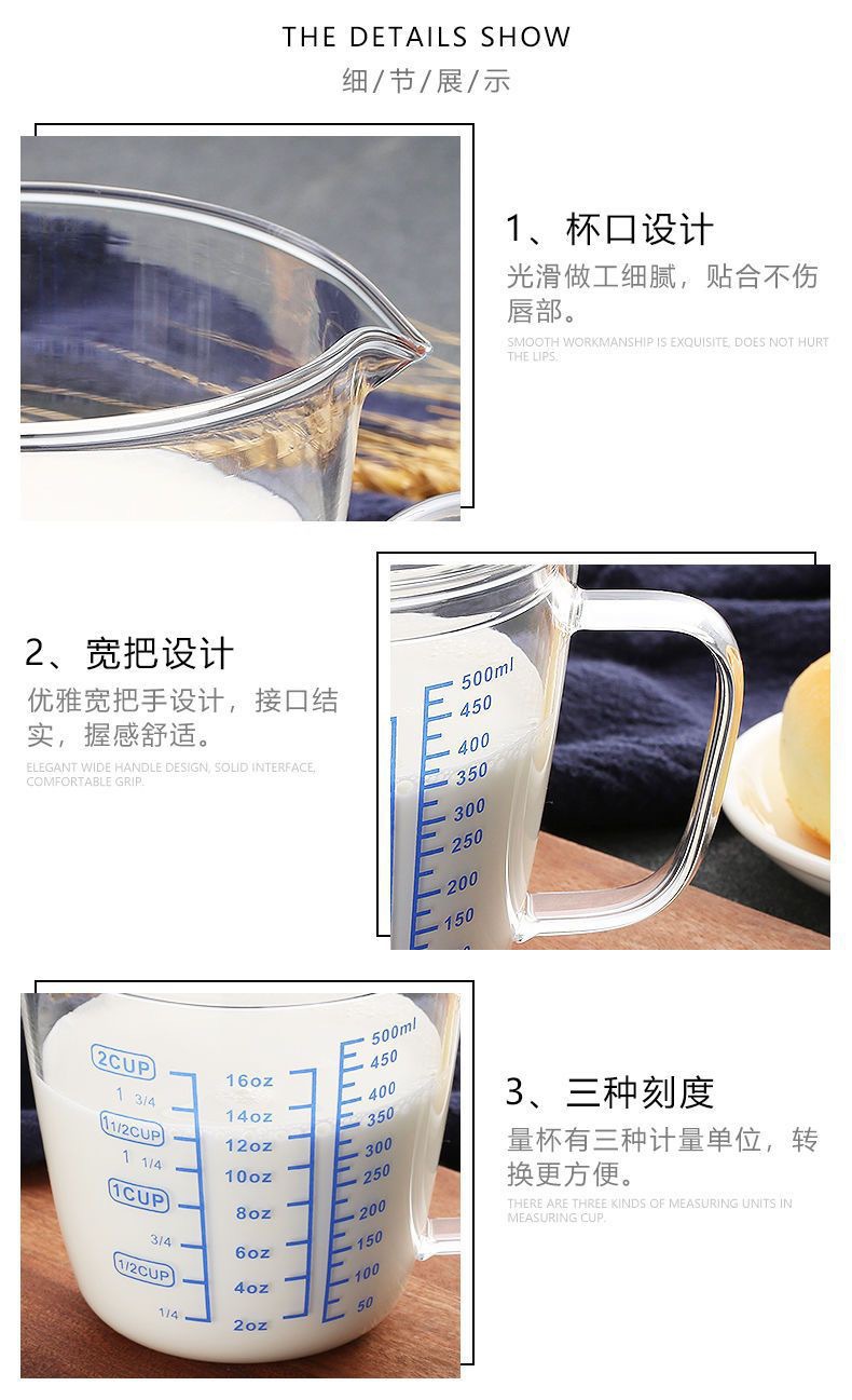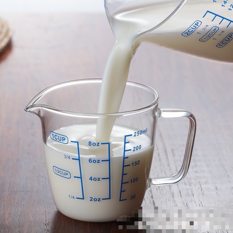 도매 내열 유리 우유 컵 우유 측정 컵 전자 레인지 전기 세라믹 스토브 오픈 화재 주방 두꺼운 베이킹 측정 컵 가구
