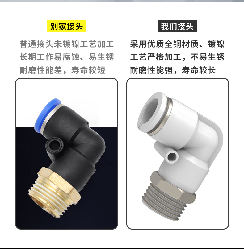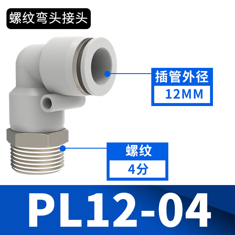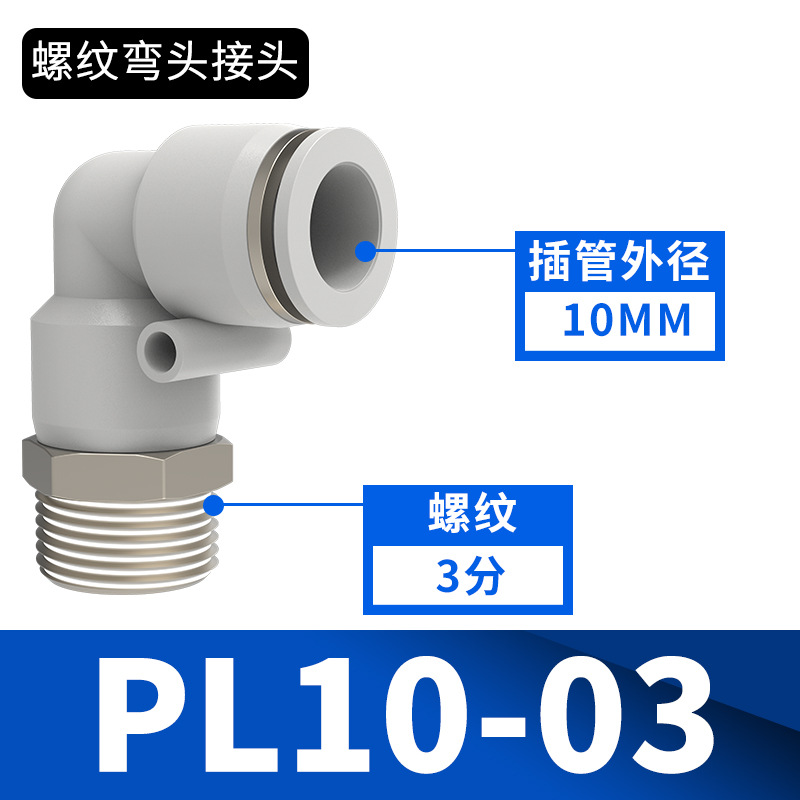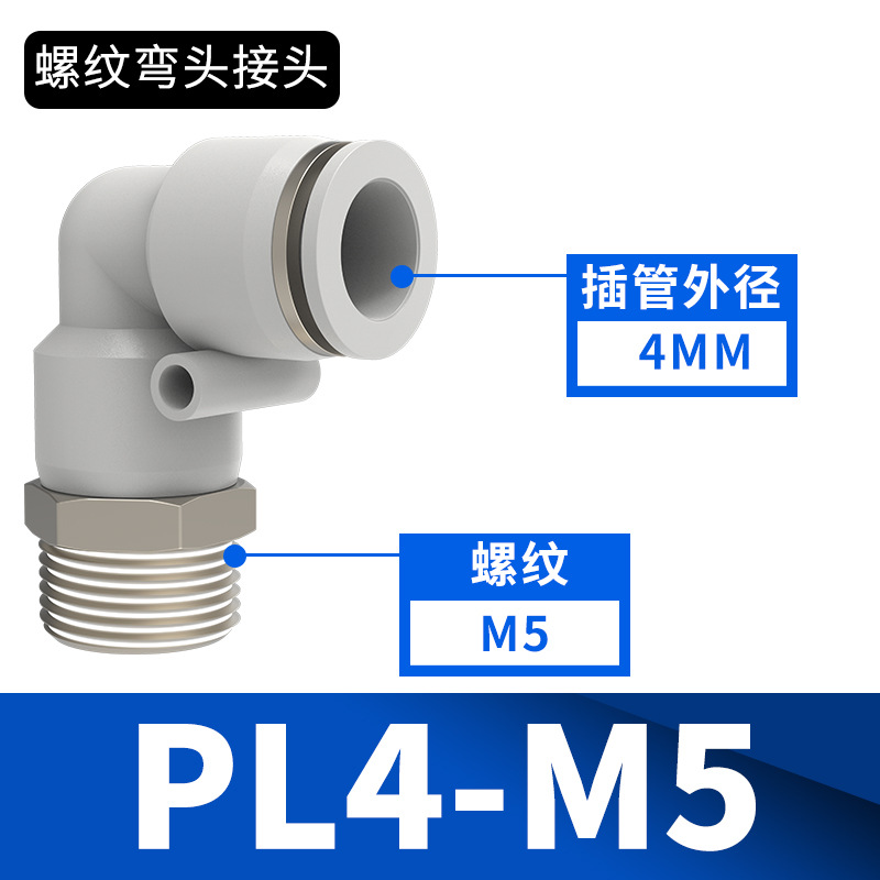 공압 직각 팔꿈치 90 도 PL4-01/PL6-01/PL8-01 공기 파이프 플라스틱 조인트 빠른 삽입 4 점