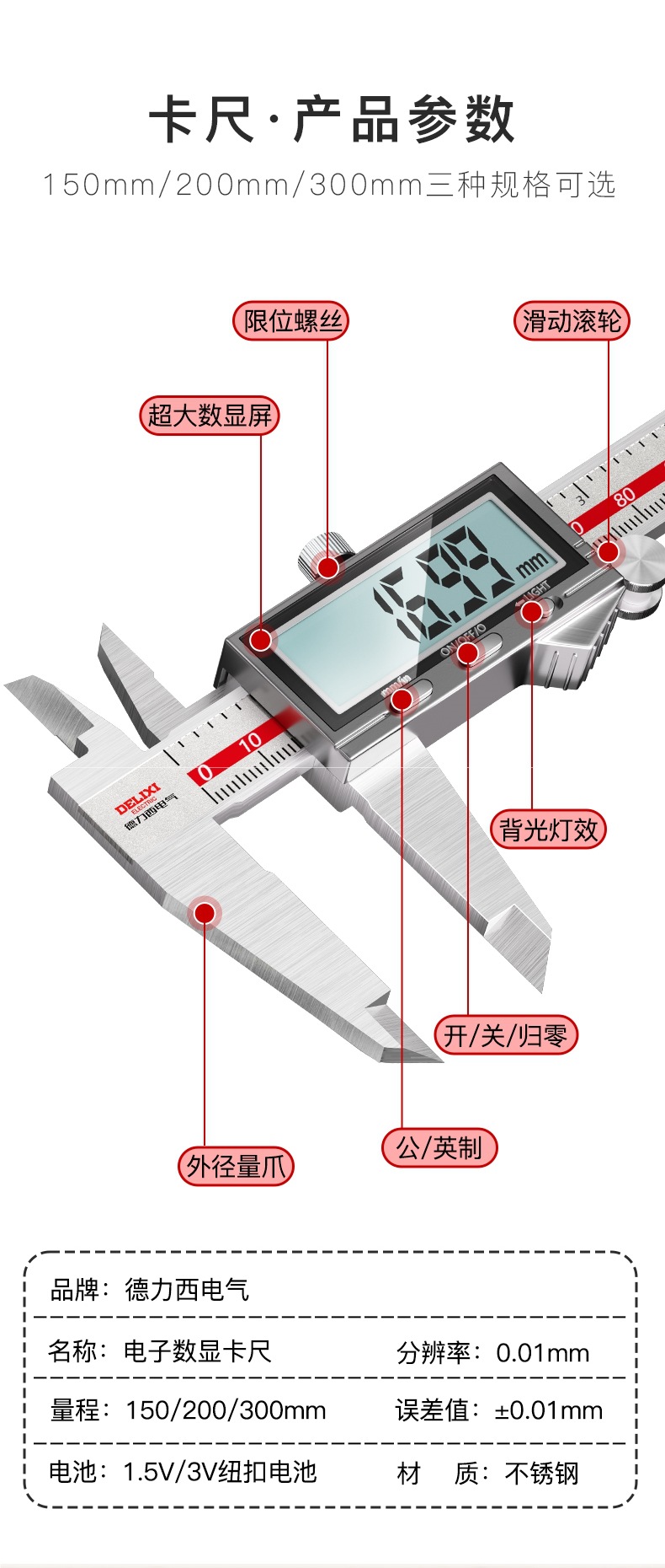 Delixi 전기 및 전자 버니어 캘리퍼 고정밀 디지털 디스플레이 산업 작은 Wenplay 고심도 오일 캘리퍼스토어 가기