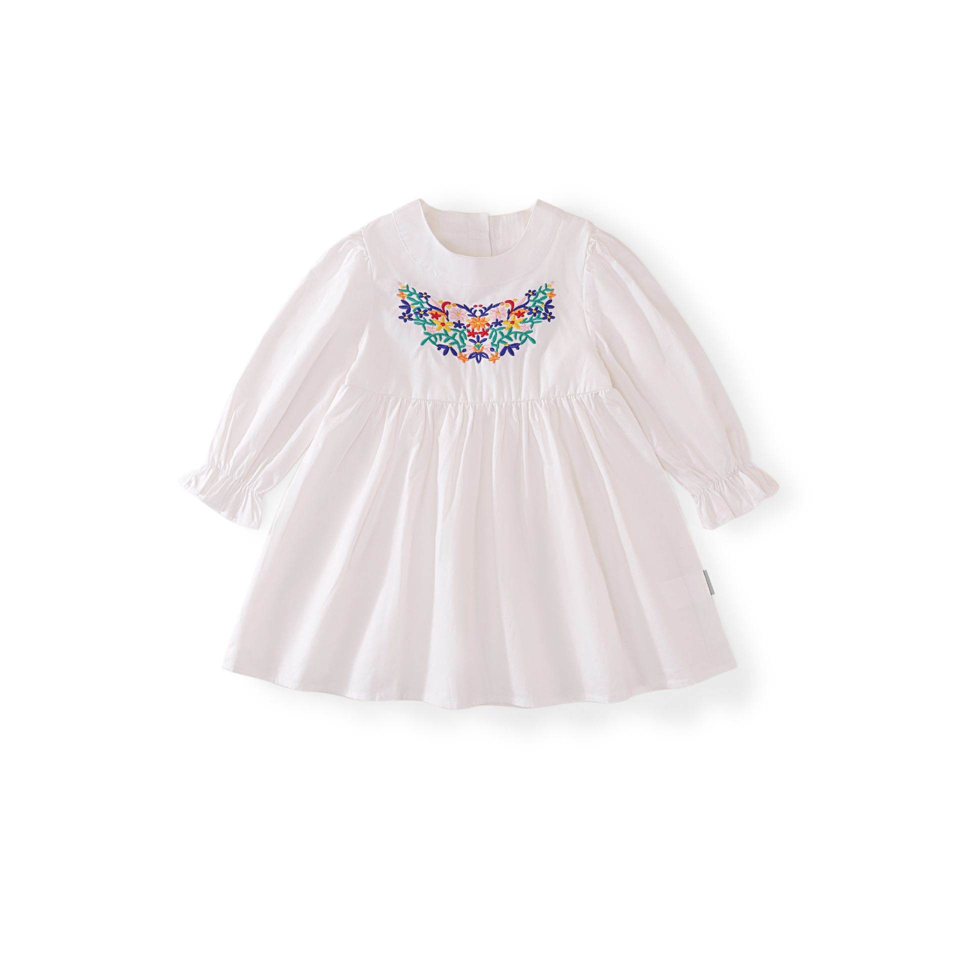 MDD 소녀 원피스 2025 봄과 가을 새로운 프랑스 자수 순수 화이트 중공업 여성 아기 원피스 국경 배치