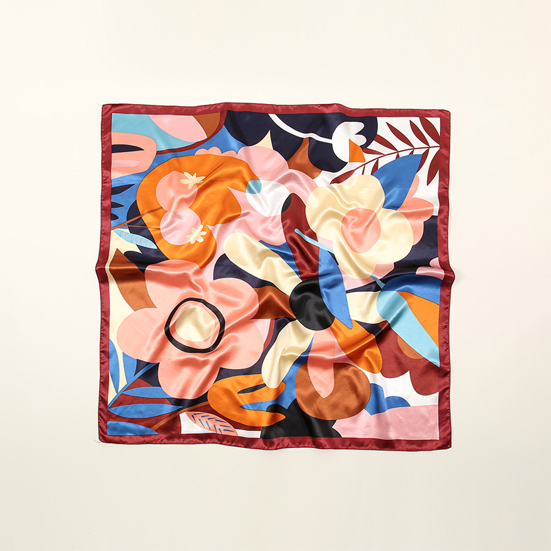 봄 새로운 한국 패션 만화 꽃 새틴 스퀘어 올 매치 핫 셀러 여성 실크 스카프 가방 터번