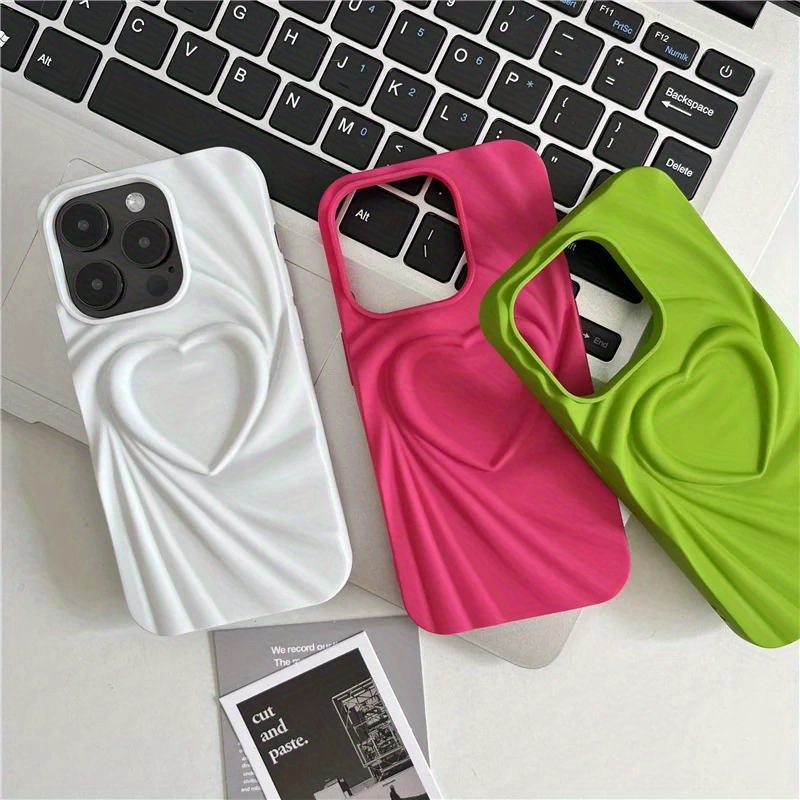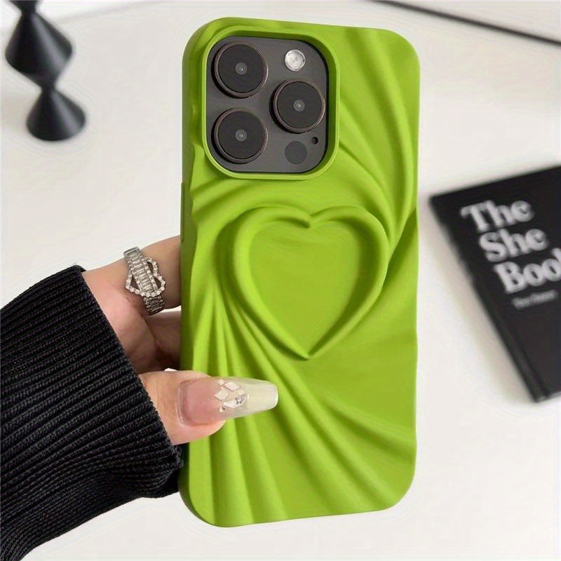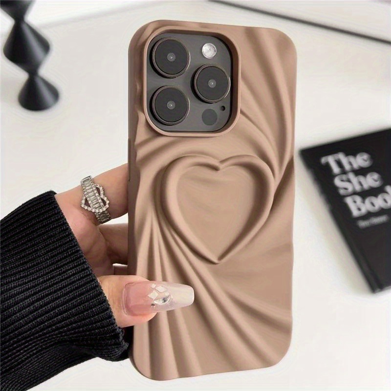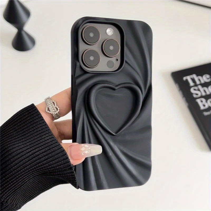 단색 입체 주름 실크 패턴 하트 디자인 아이폰 17 15ProMax 휴대폰 케이스 애플 14 소프트 보호 케이스