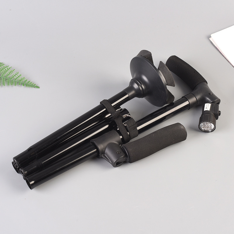 노인 야외 망원경 두 배 손잡이 네 다리 지팡이 지능형 알루미늄 합금 보행 보조 장치를 위한 빛을 가진 휴대용 접히는 지팡이