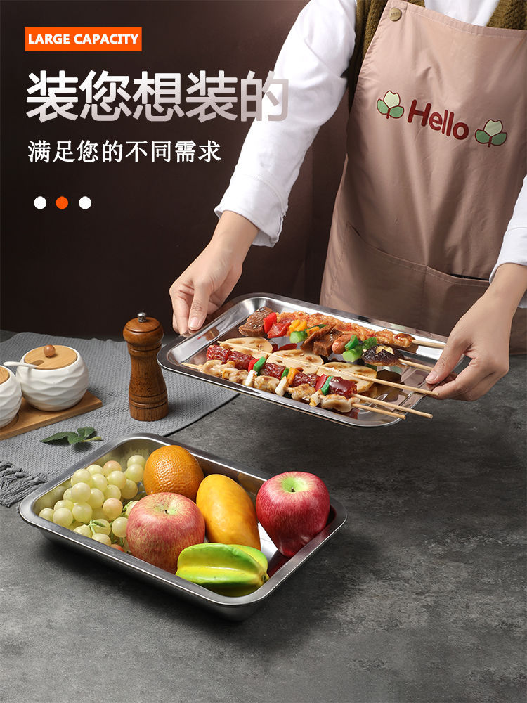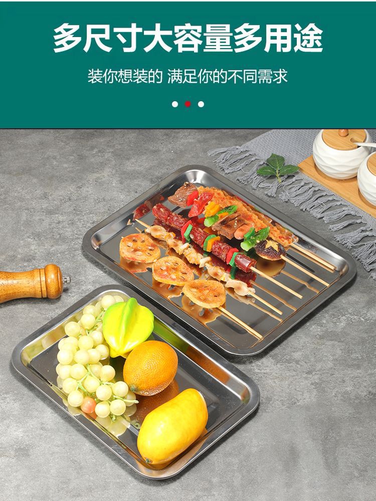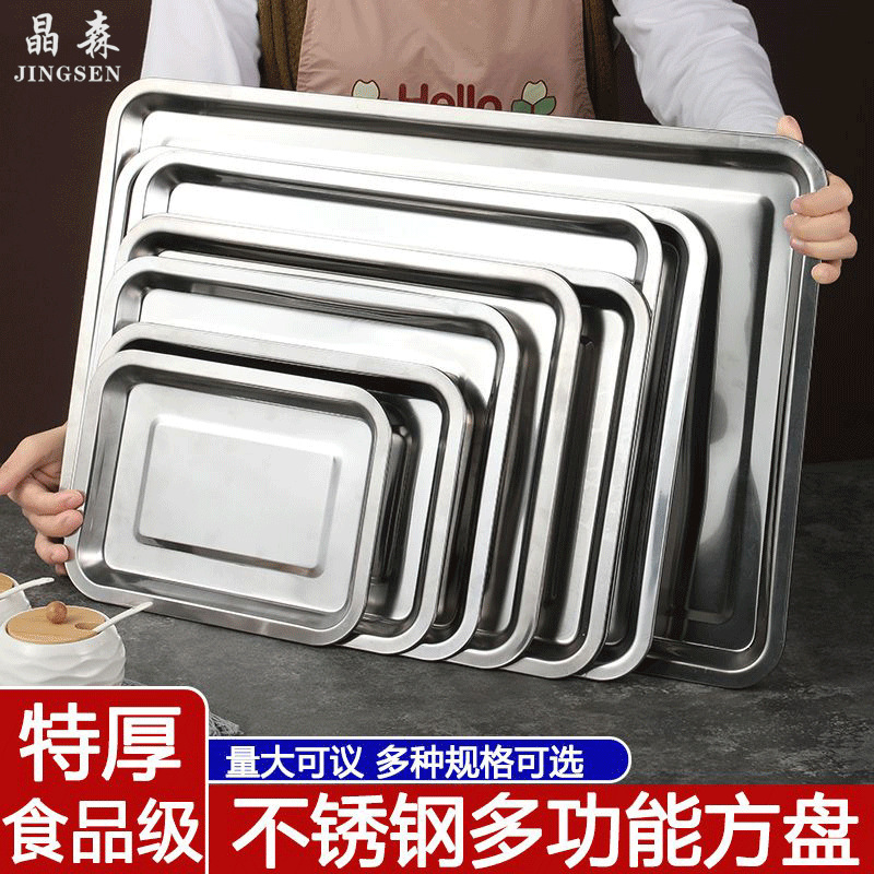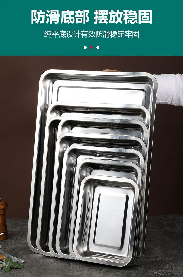 여분의 두꺼운 식품 학년 스테인레스 스틸 스퀘어 플레이트 직사각형 플레이트 바베큐 플레이트 찐 쌀 플레이트 만두 플레이트 트레이 상업 계단스토어 가기
