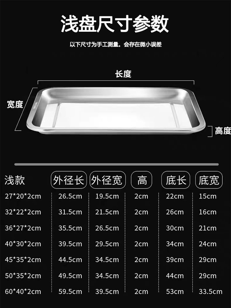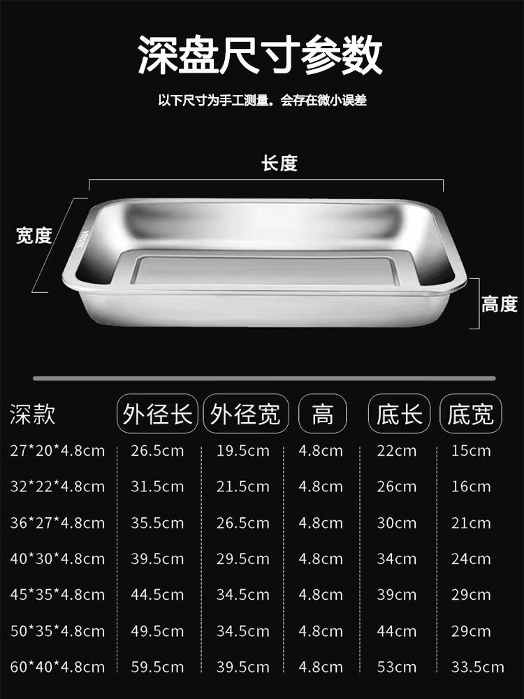 여분의 두꺼운 식품 학년 스테인레스 스틸 스퀘어 플레이트 직사각형 플레이트 바베큐 플레이트 찐 쌀 플레이트 만두 플레이트 트레이 상업 계단