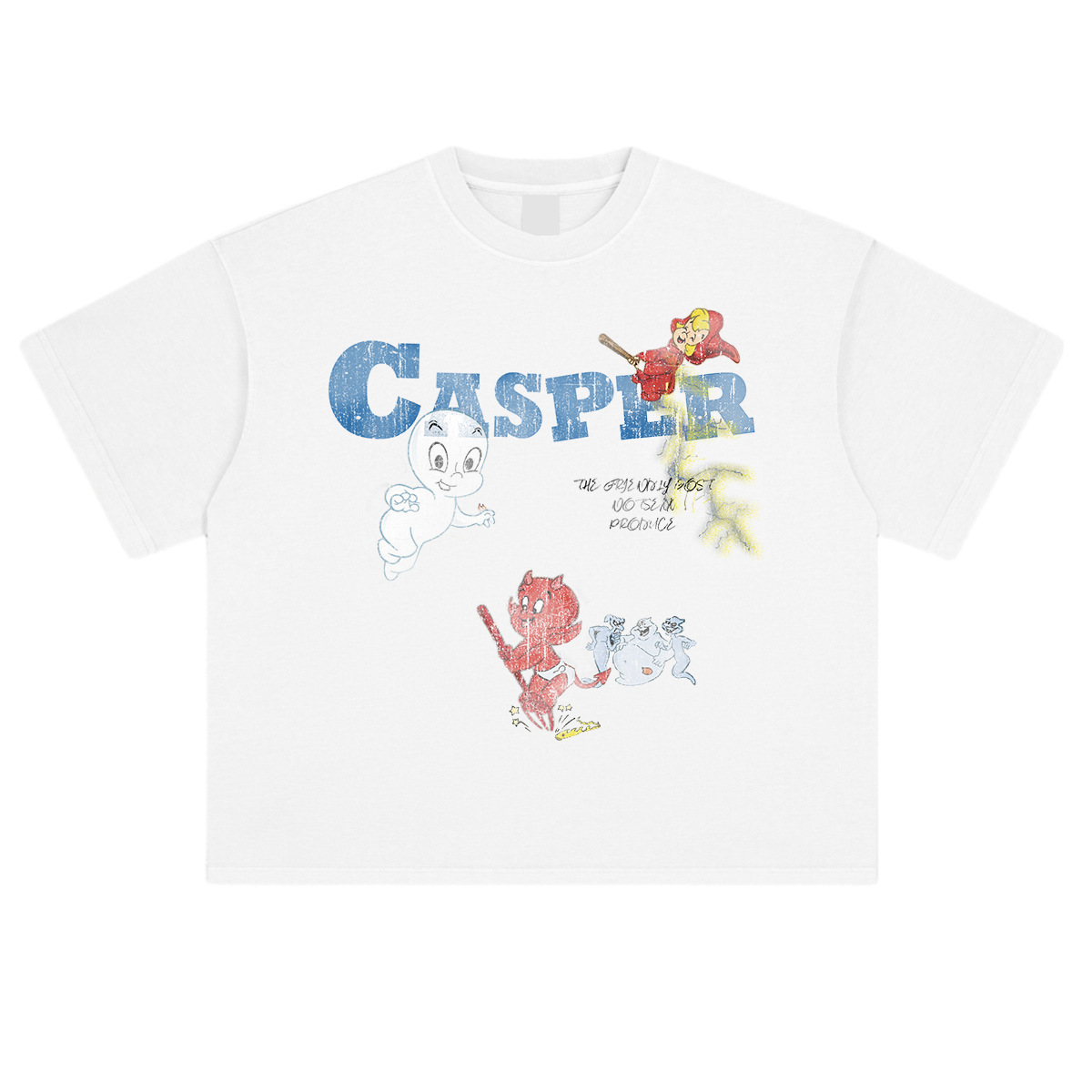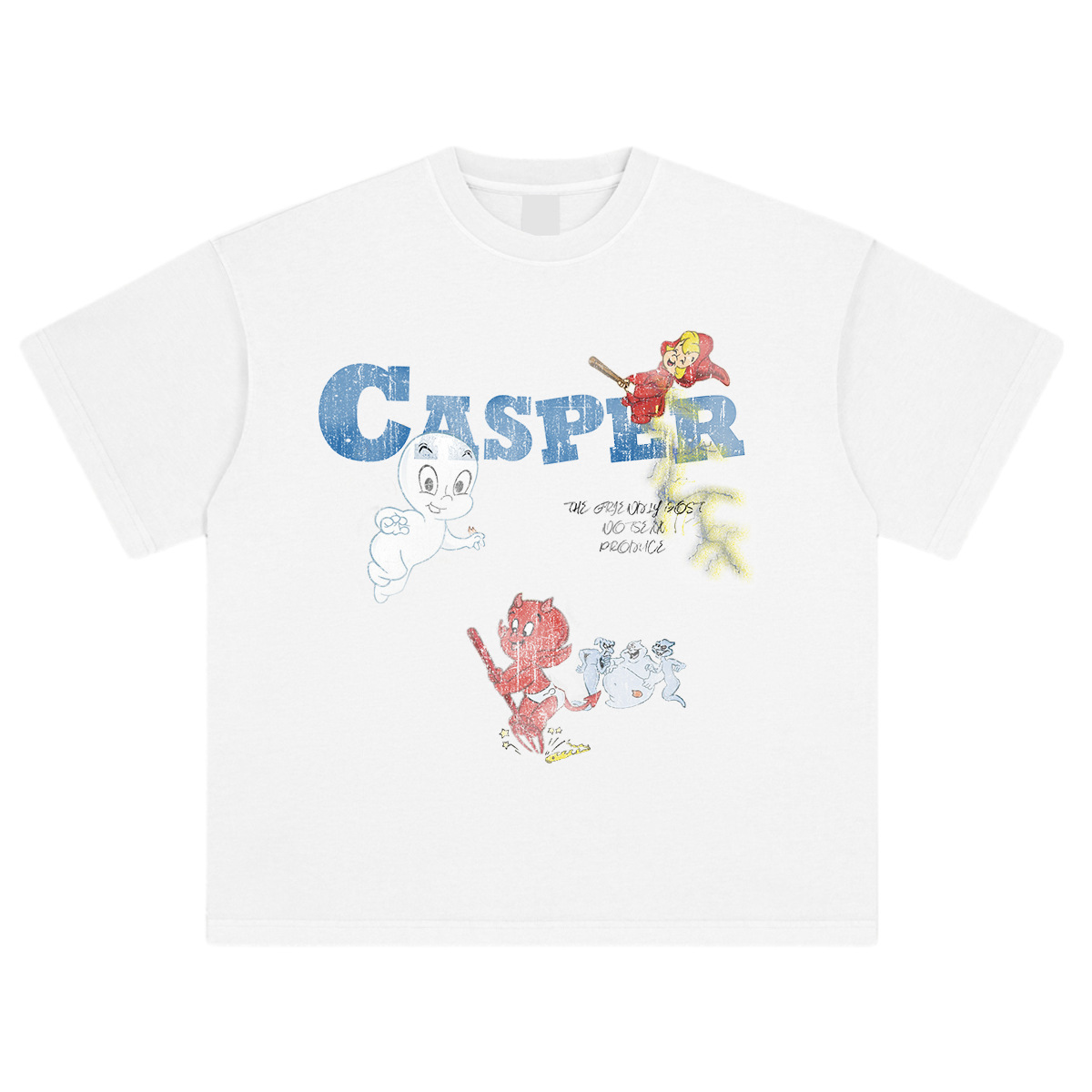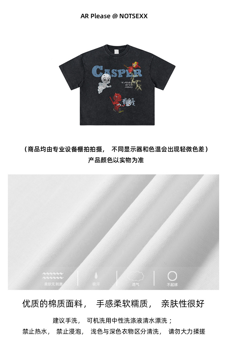 NOTSEXX "엘프" 디지털 화이트 잉크 직접 주입 260g 면 오래된 박시 느슨한 반팔 티셔츠 남성스토어 가기