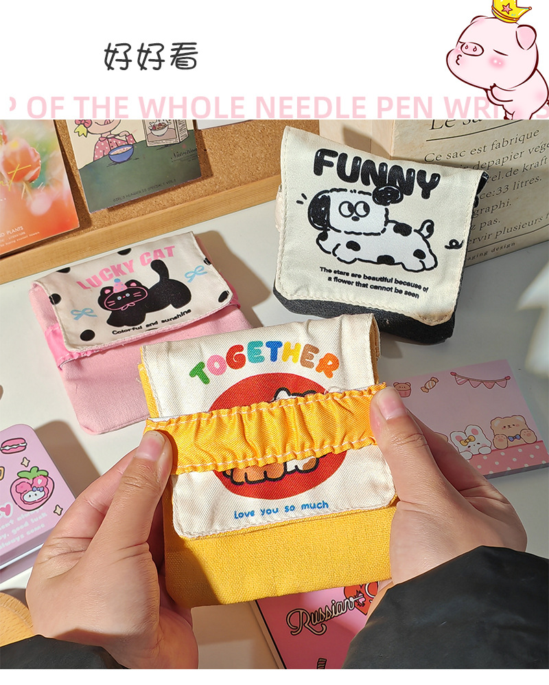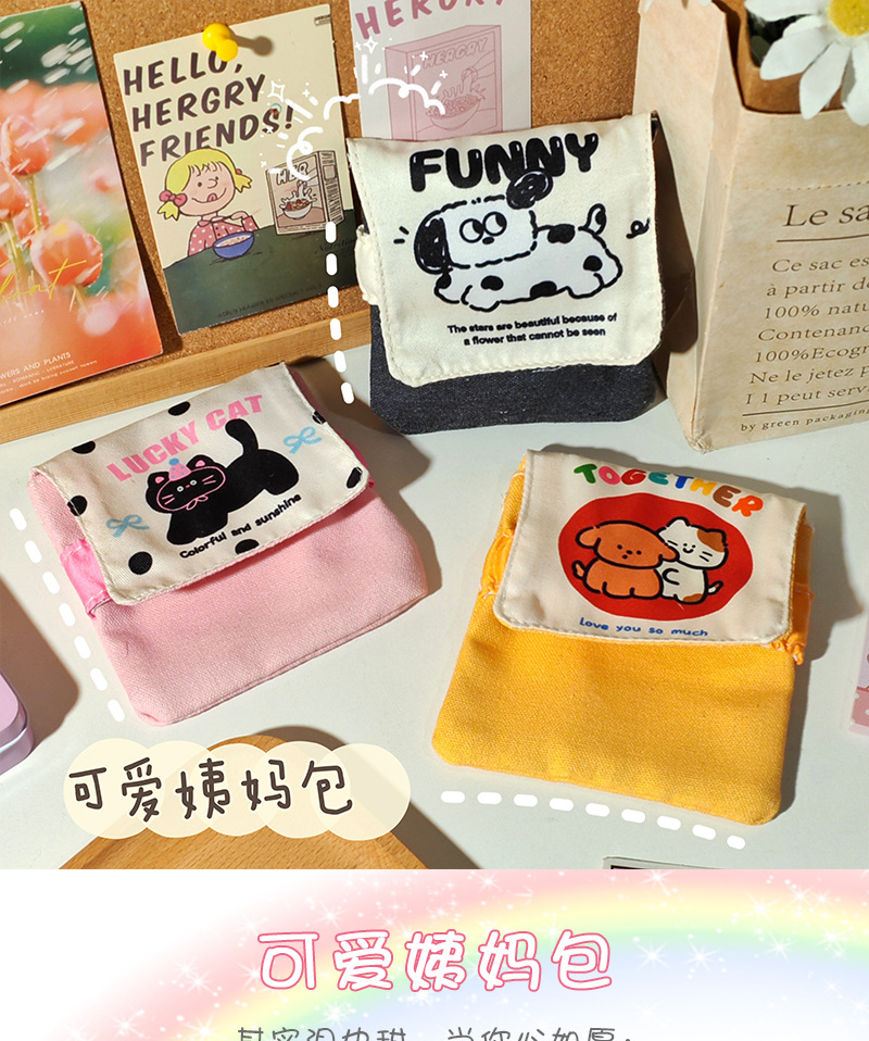귀여운 만화 귀여운 이모 가방 소녀의 심장 저장 가방 작고 편리한 저장 가방 휴대용 위생 면 월간 가방