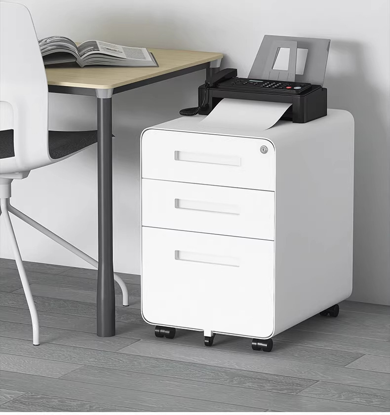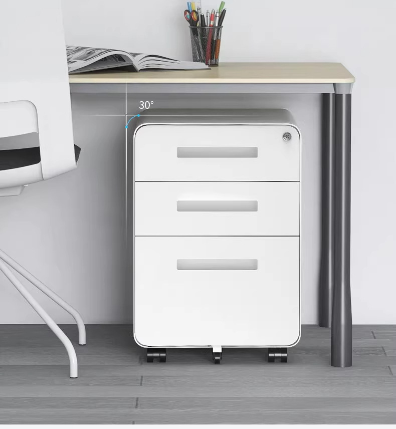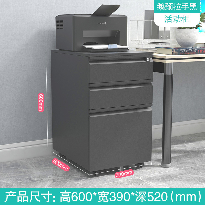三抽移动工位收纳柜钢制办公室桌下带锁活动柜床头矮柜圆弧抽屉柜