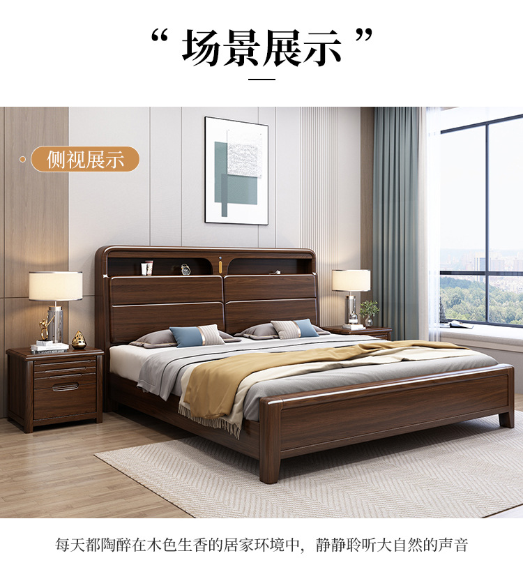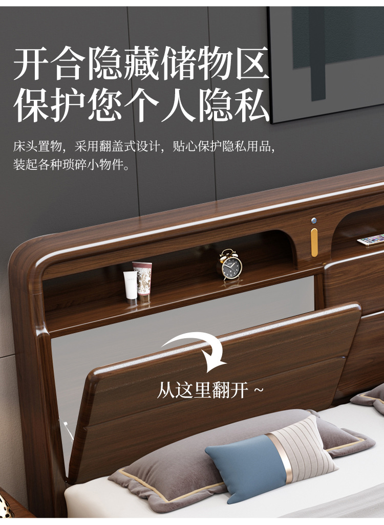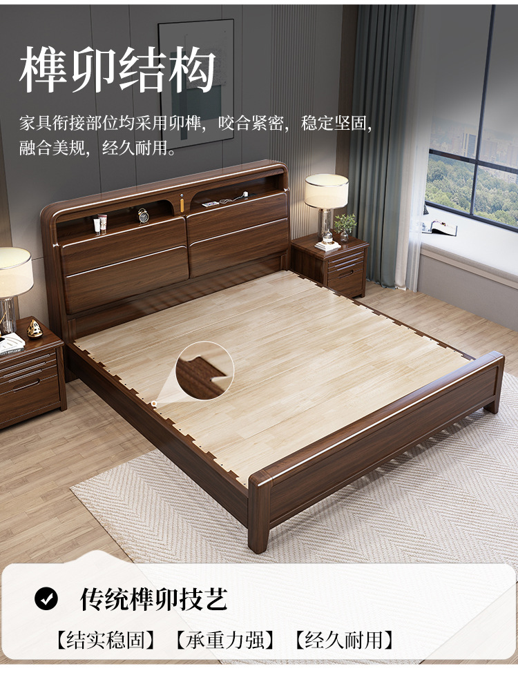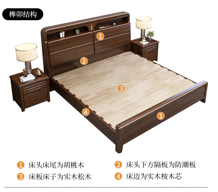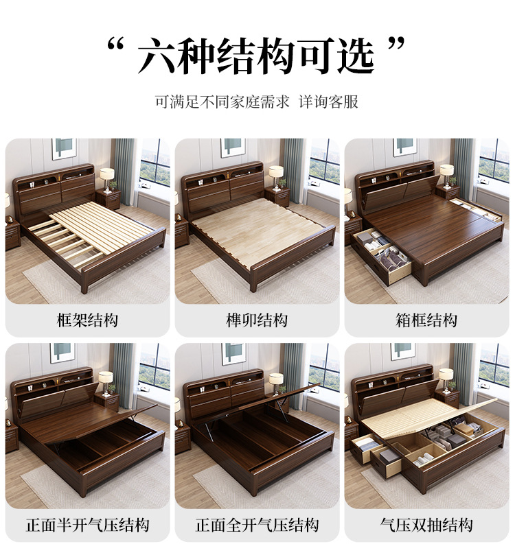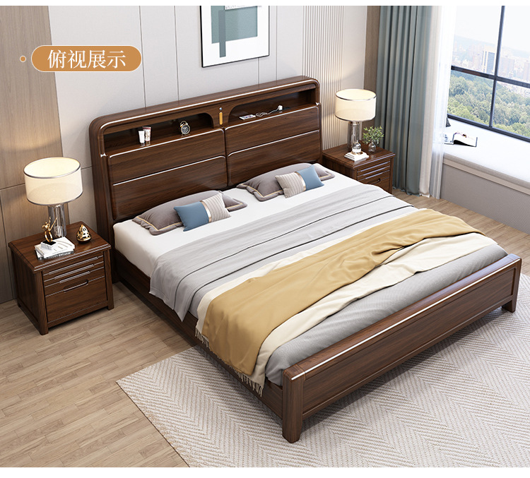호두 높은 상자 저장 침대 단단한 나무 더블 침대 중국 단단한 나무 침대 2 m x 2 m 2 가득 차있는 단단한 나무 침실 상자 침대스토어 가기