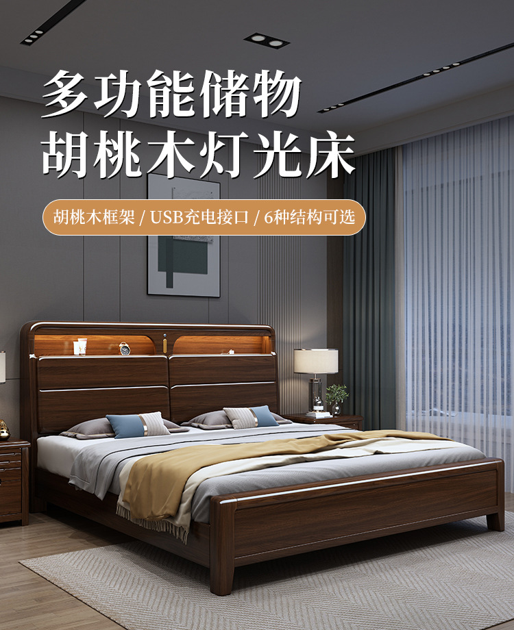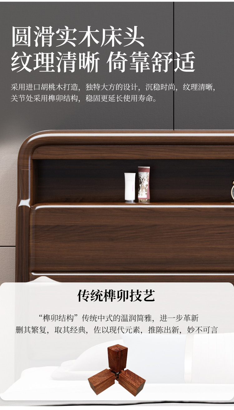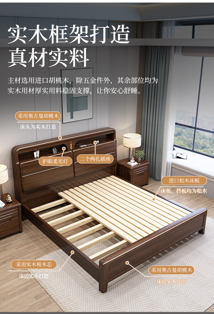 • 호두나무 침대+침대 옆 테이블*1+라텍스 매트리스