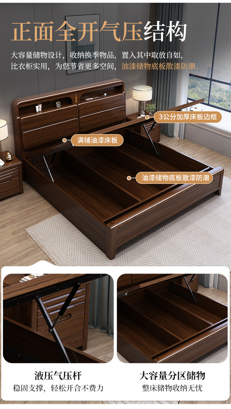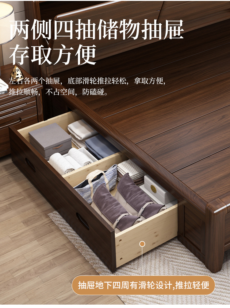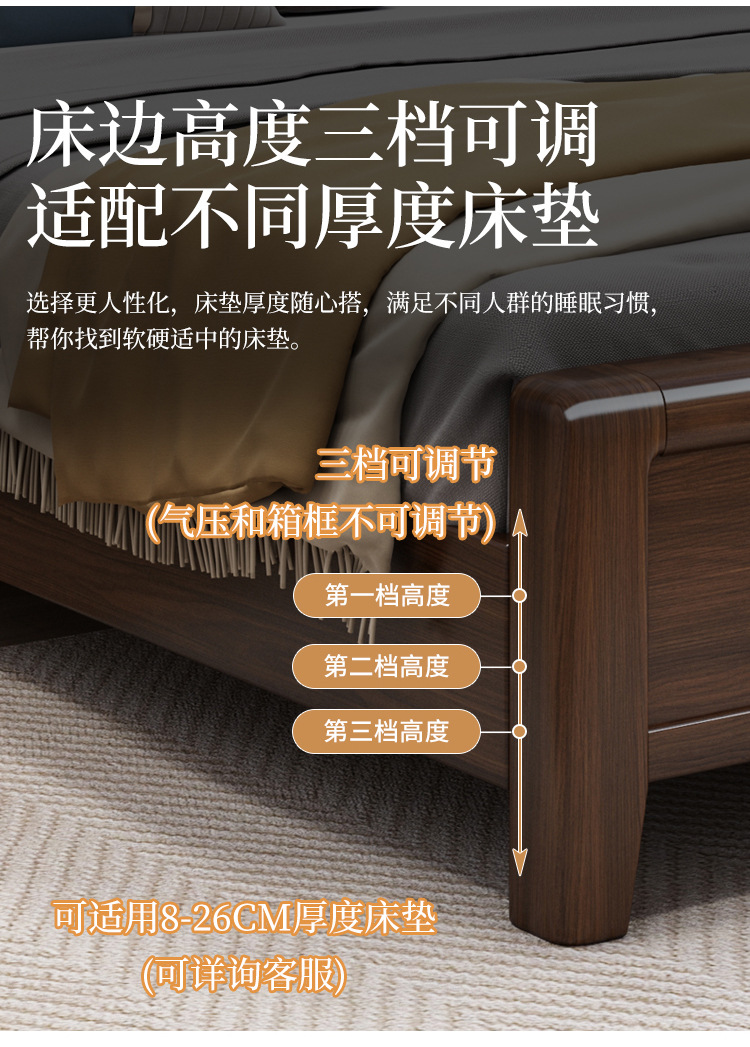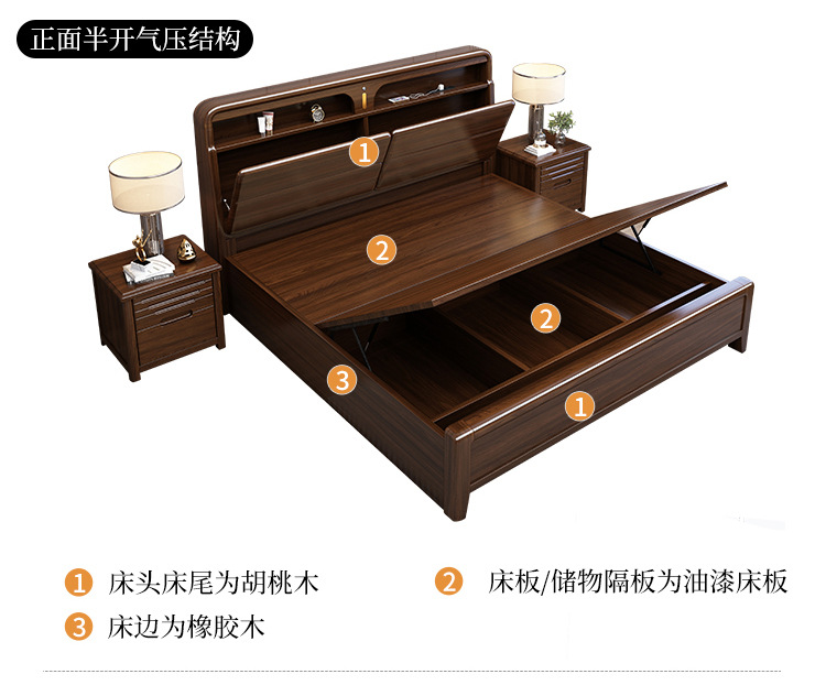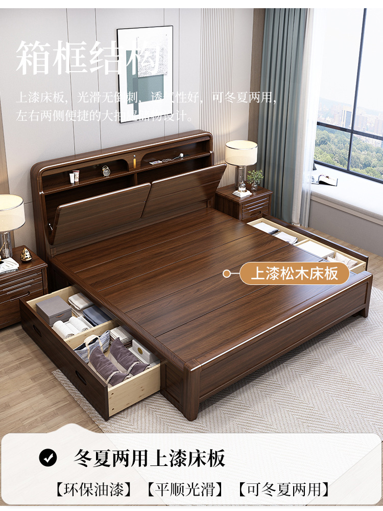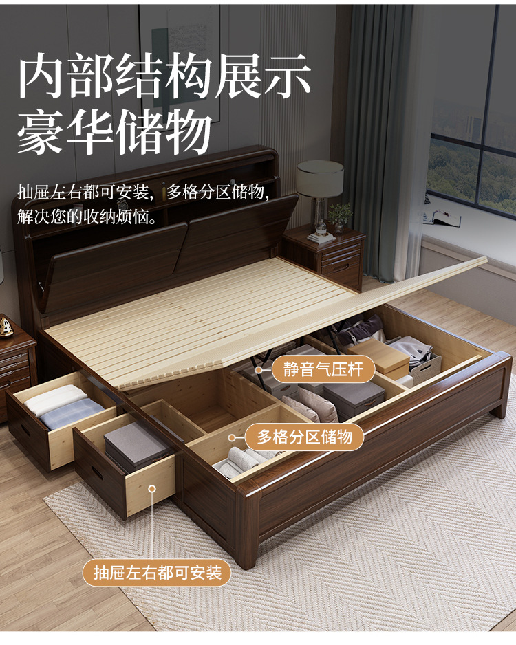 호두 높은 상자 저장 침대 단단한 나무 더블 침대 중국 단단한 나무 침대 2 m x 2 m 2 가득 차있는 단단한 나무 침실 상자 침대