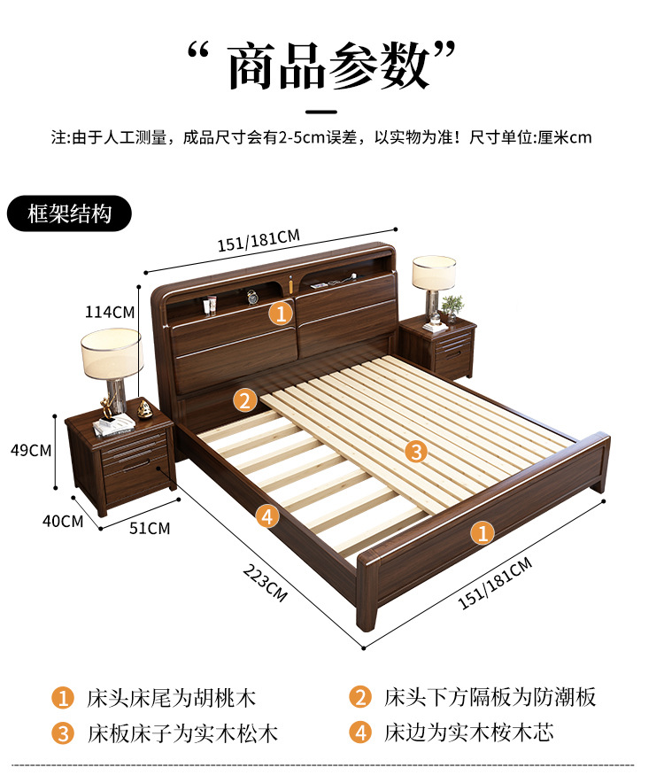 • 월넛 침대 + 침대협탁*2 + 3점식 세탁 라텍스 매트리스