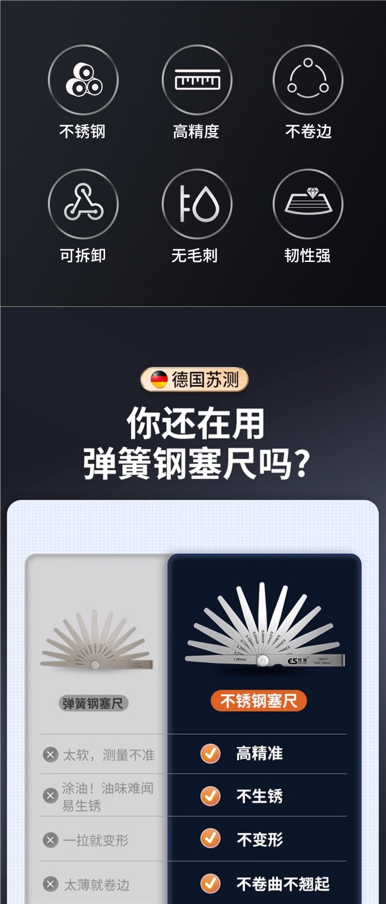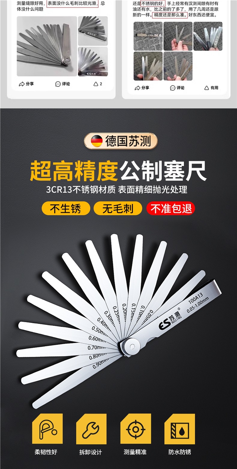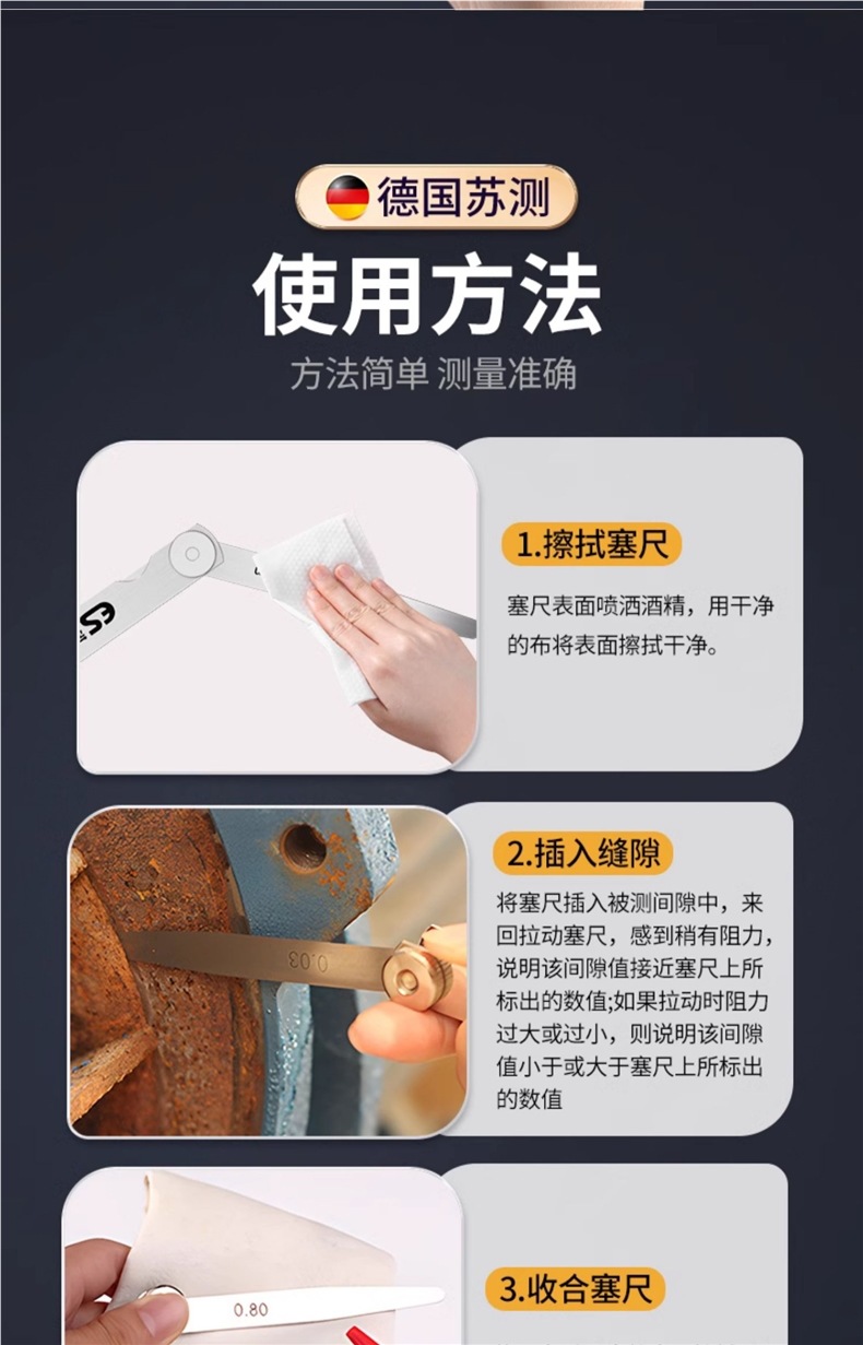 독일 수 측정 필러 게이지 스테인레스 스틸 고정밀 플러그 게이지 단일 밸브 클리어런스 세트 두께 게이지 체 게이지 필러 게이지스토어 가기