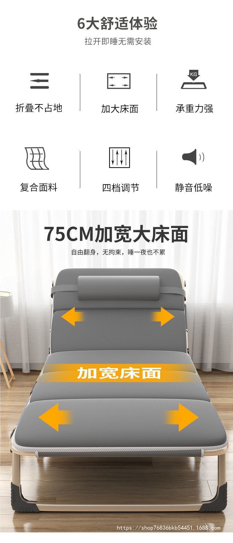 접이식 침대 싱글 사무실 점심 식사 침대 휴대용 안감 의자 병원 동반 침대 간단한 낮잠 침대 3 월스토어 가기