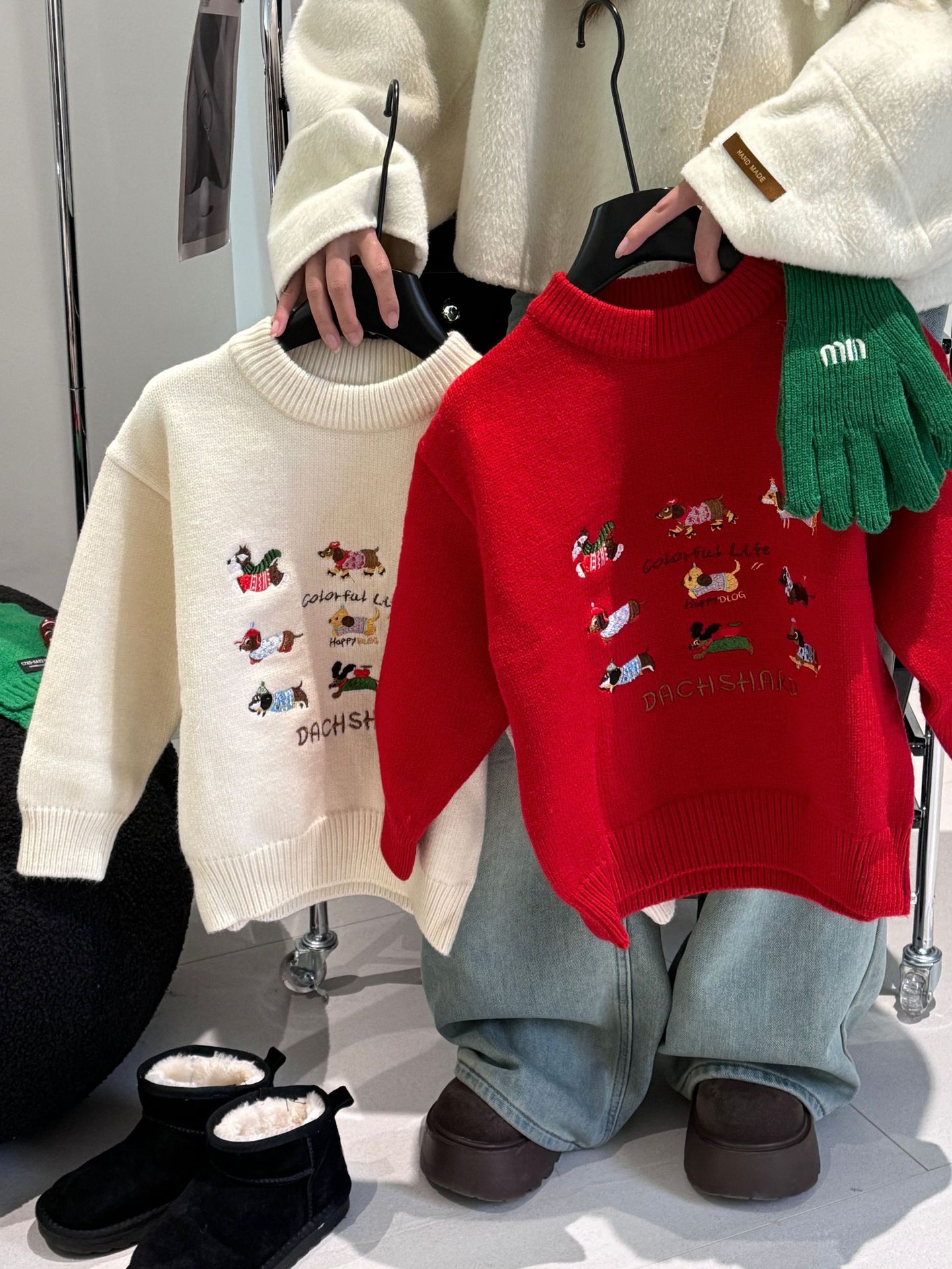 Tairu 2024 겨울 새 한국 어린이 설날 만화 따뜻한 풀오버 두꺼운 스웨터 소년의 서양식 탑스토어 가기
