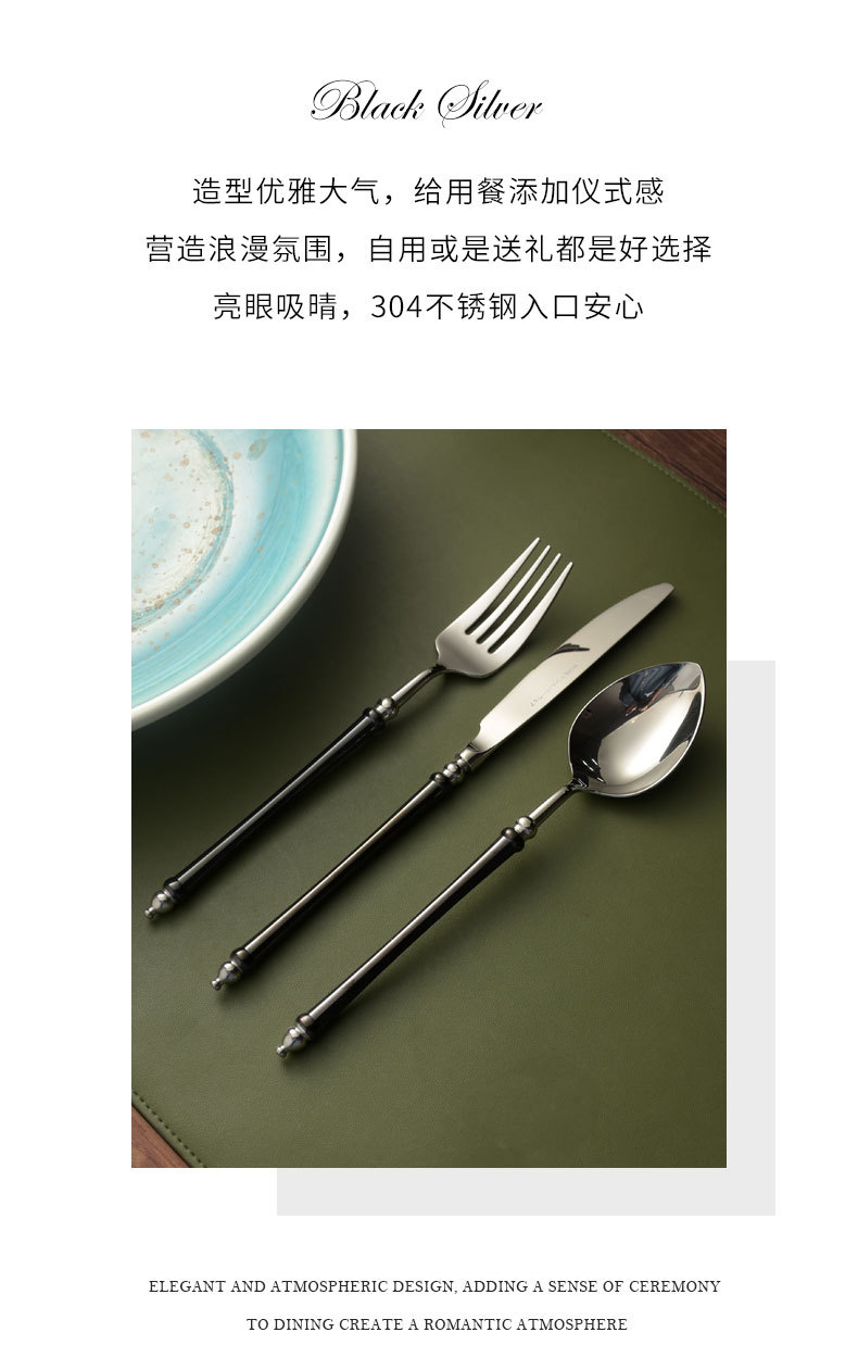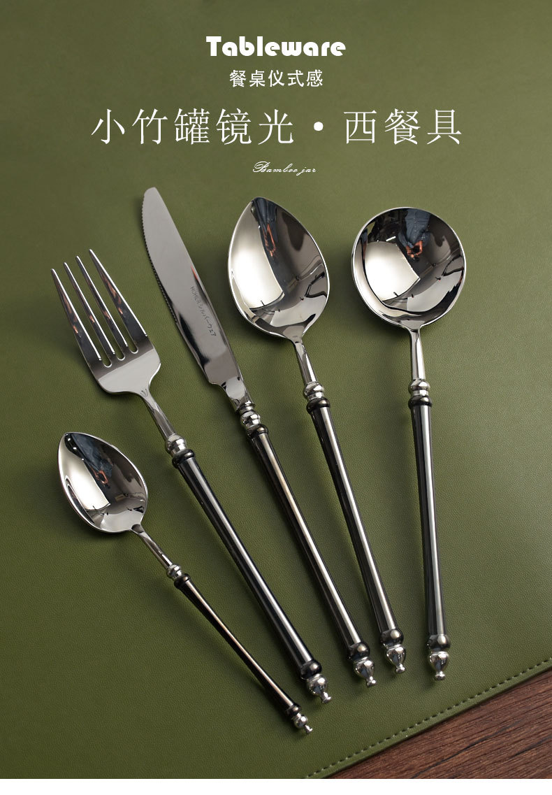 빈티지 일본 스타일 작은 대나무 항아리 블랙 실버 304 스테인레스 스틸 스테이크 나이프, 포크 및 스푼 3 피스 세트 웨스턴 식기 젓가락