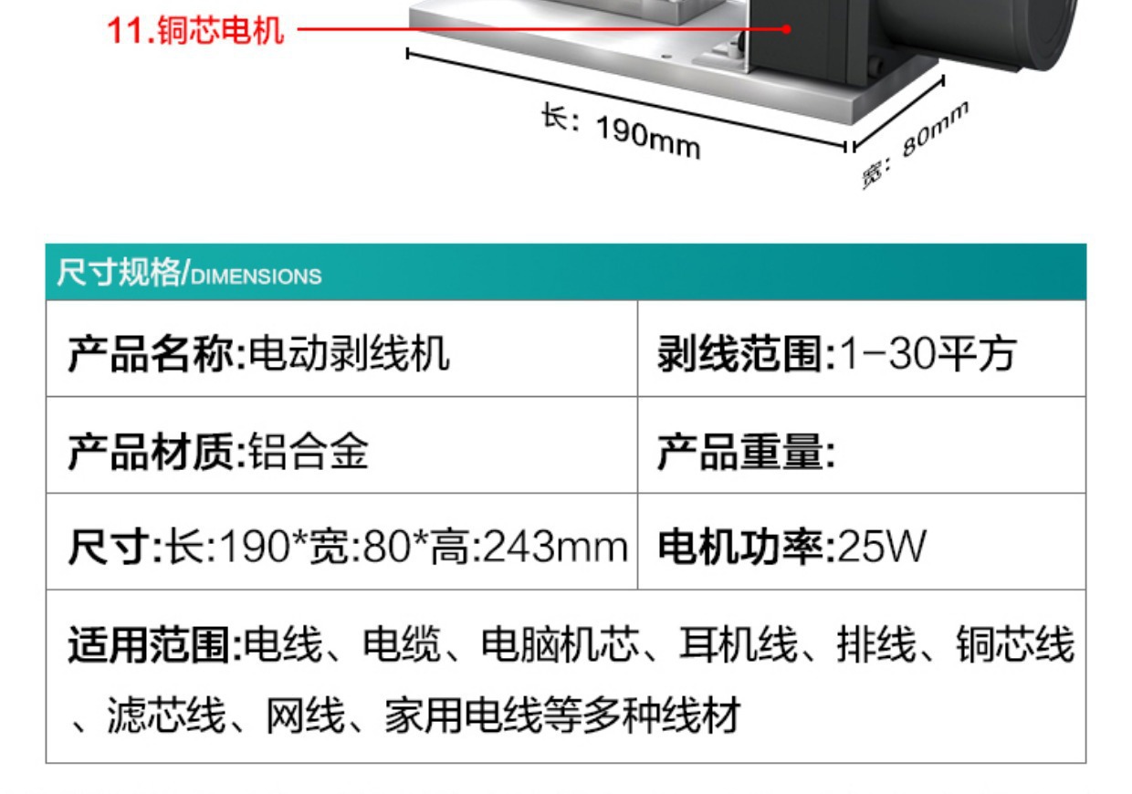 • [조절이 필요 없는 전기 모델] 자동 와이어 스트리핑 기계