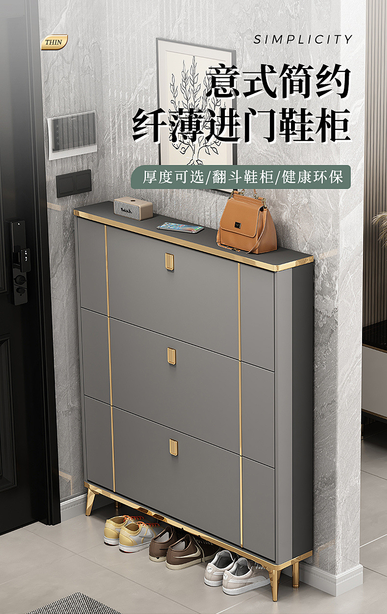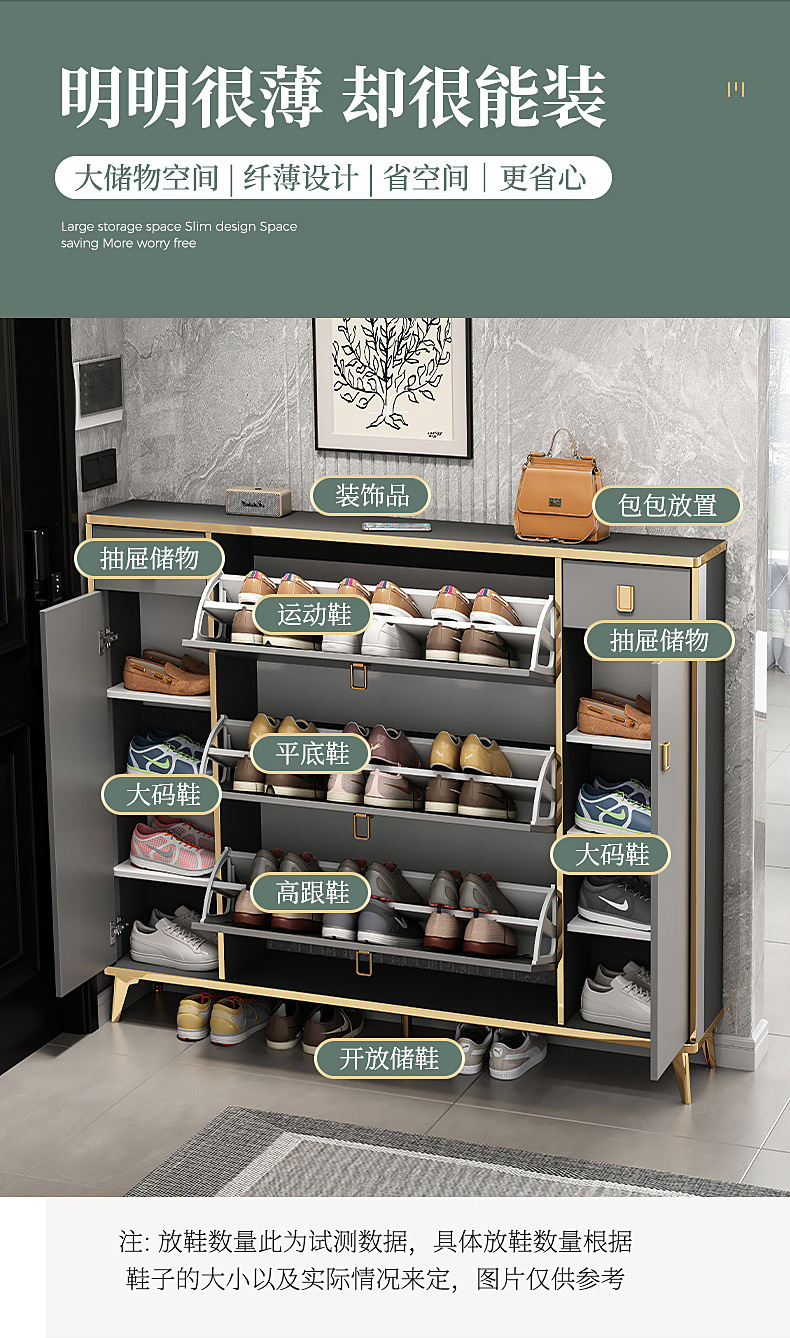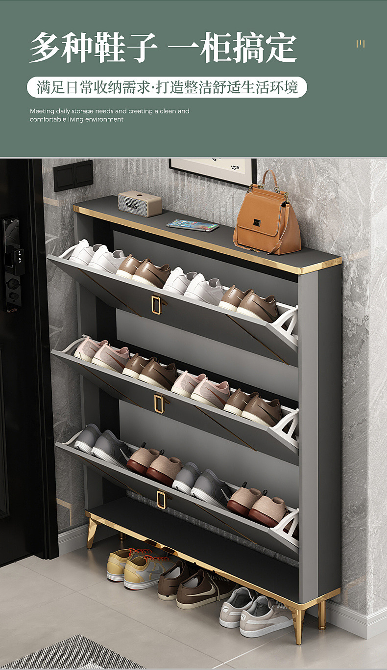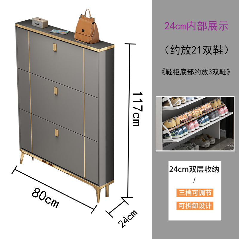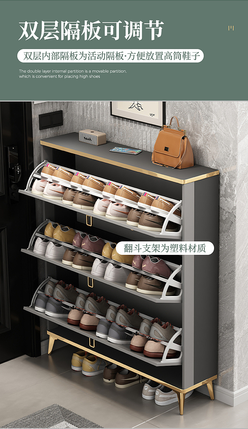 가벼운 고급 울트라 얇은 플립 버킷 신발 캐비닛 홈 도어 대용량 현대 입구 간단한 작은 아파트 입구 신발 선반 보관