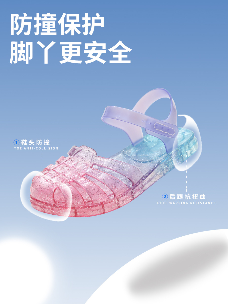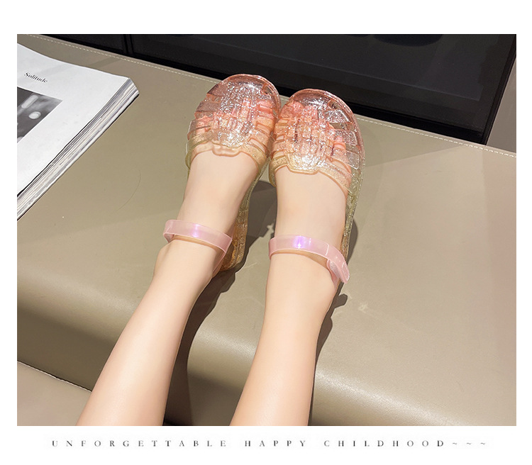 그라디언트 소녀 샌들 플라스틱 해변 여름 소녀 공주 크리스탈 부드러운 바닥 키즈 아기 로마 젤리스토어 가기