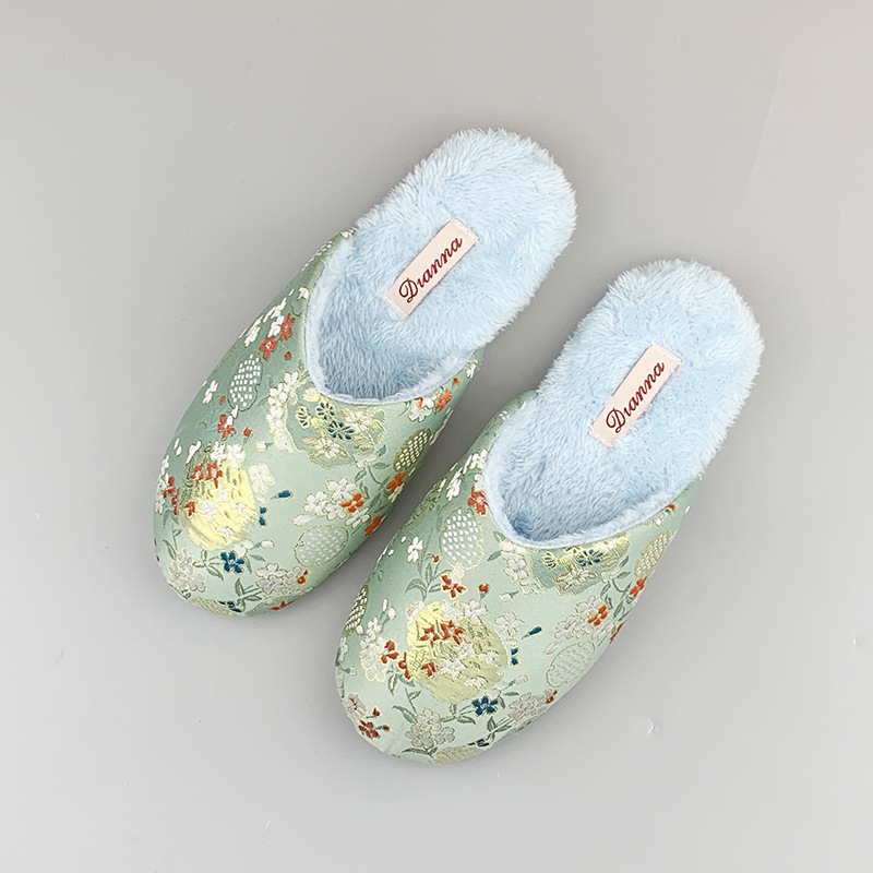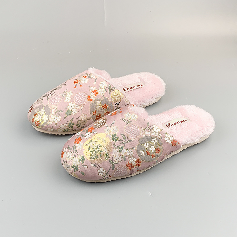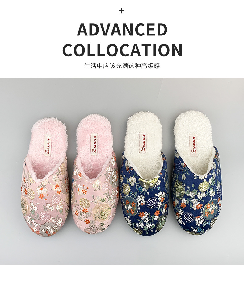 가을과 겨울 기모 슬리퍼 자수 홈 따뜻한 미끄럼 방지 커플 하이 엔드 센스 2024 새로운