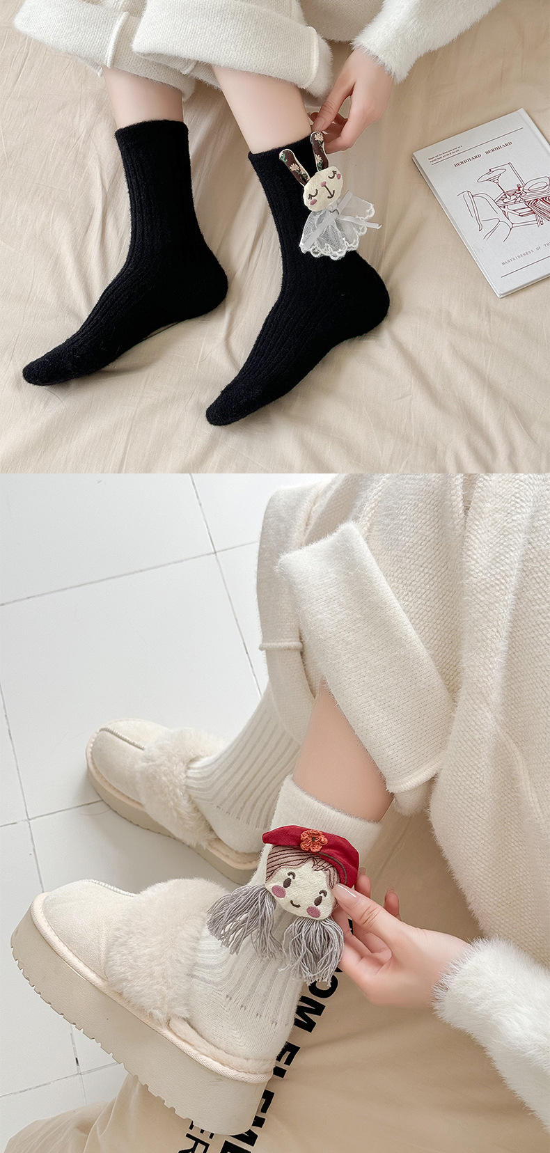 여성의 가을과 겨울을위한 Cheng의 도매 양말 기모 두꺼운 따뜻한 벨벳 인 스타일 인형 수면 다용도 더미 양말스토어 가기