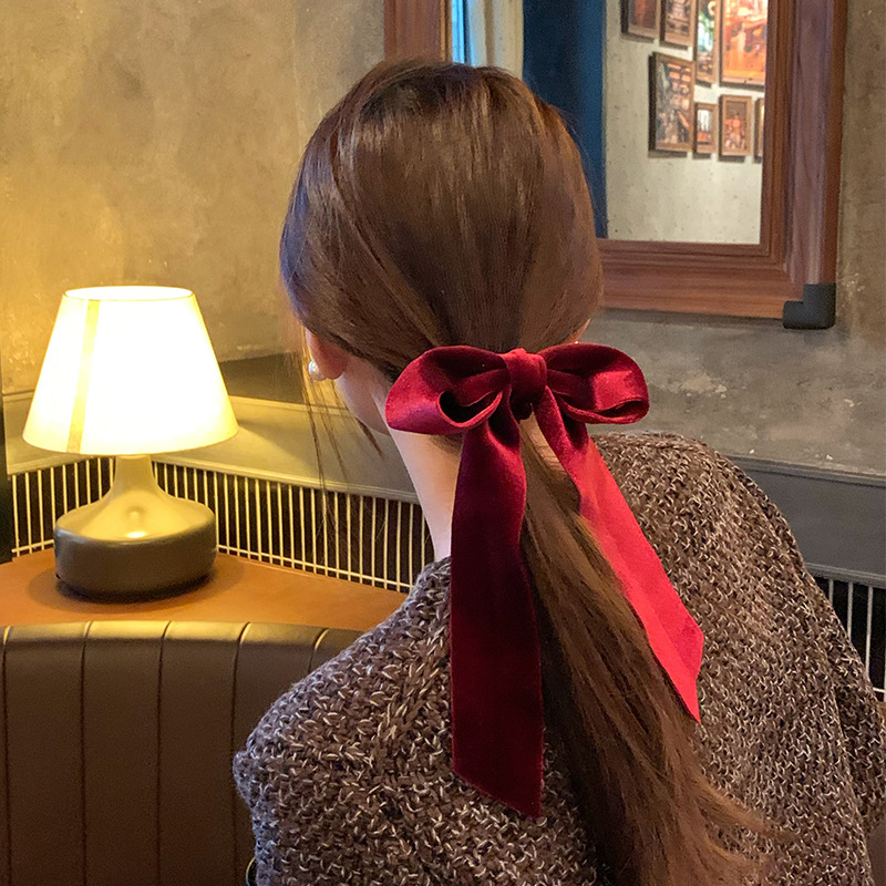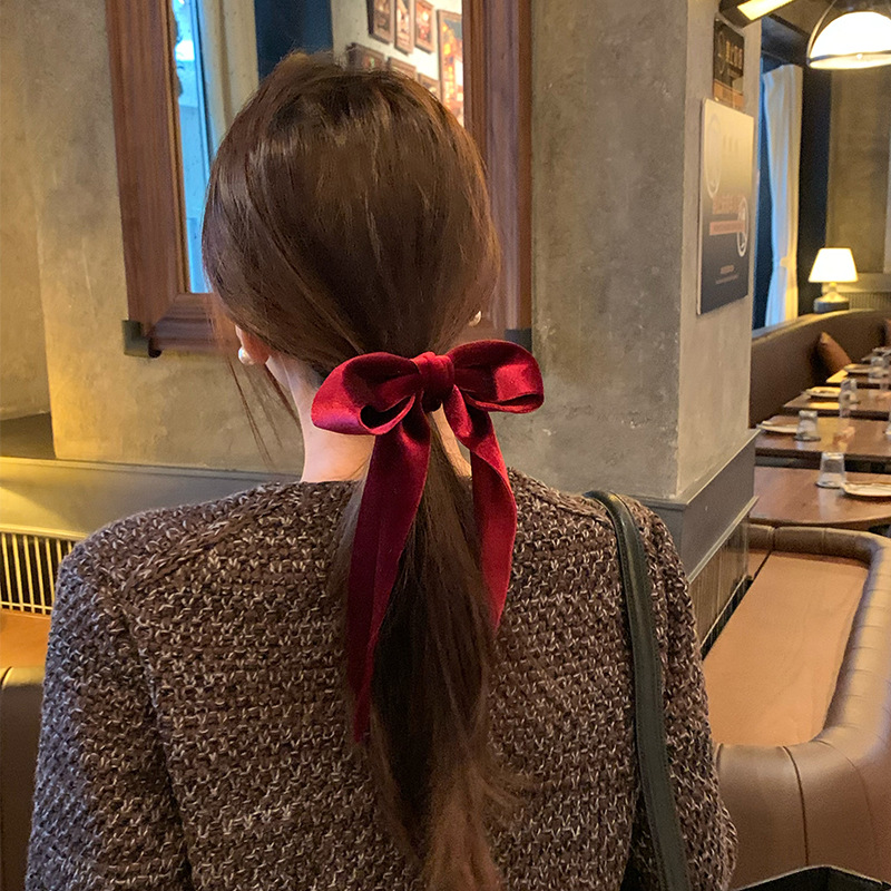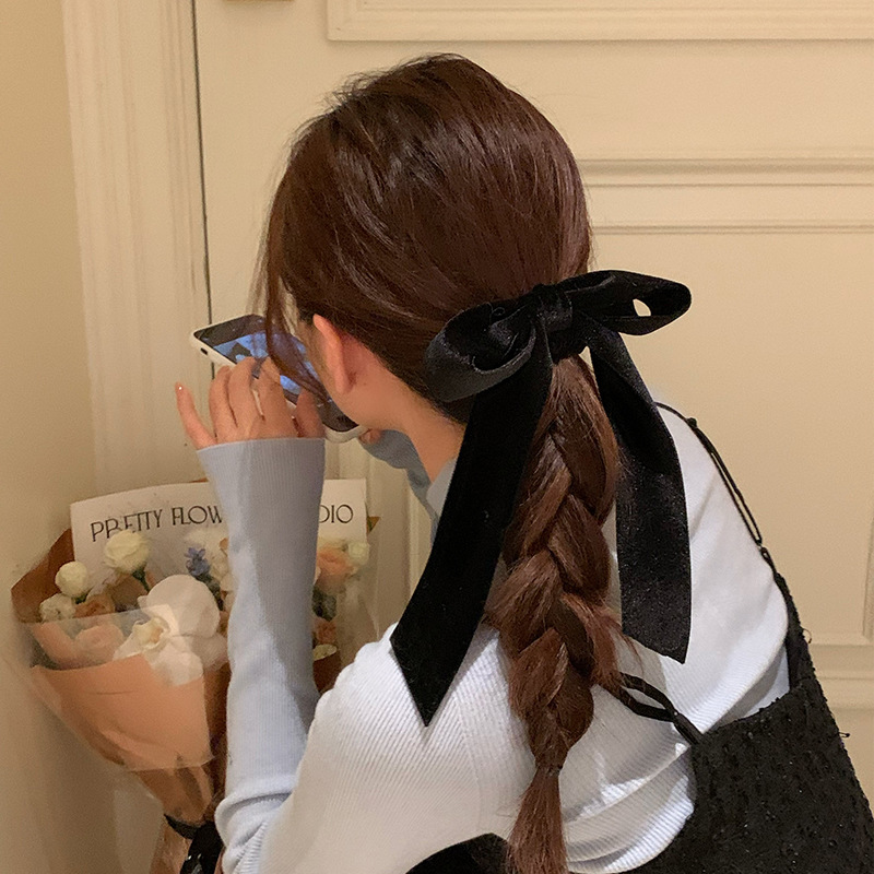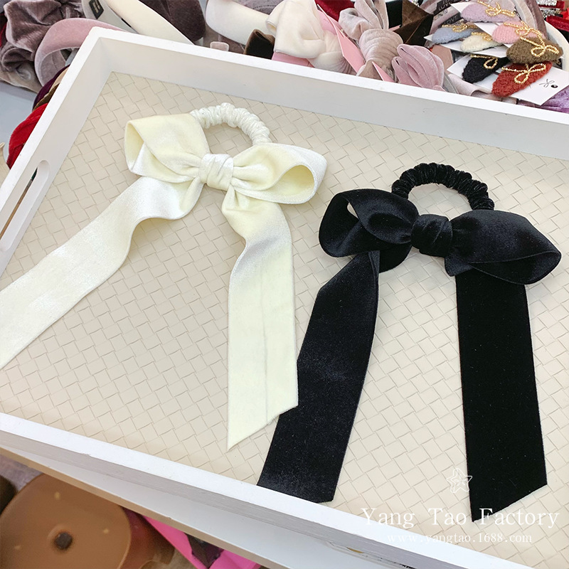 한국 정품 흑백 고급 감각 3 차원 벨벳 활 리본 레트로 대형 내장 헤어 링 고무 밴드 헤드 라인스토어 가기