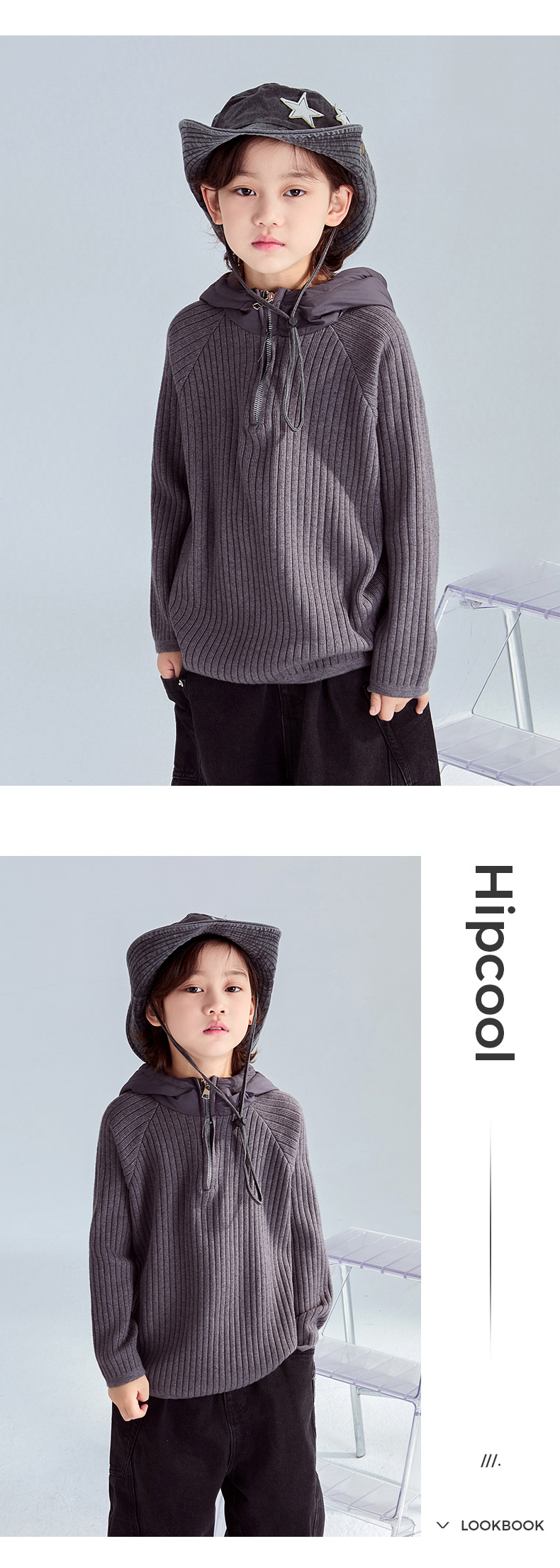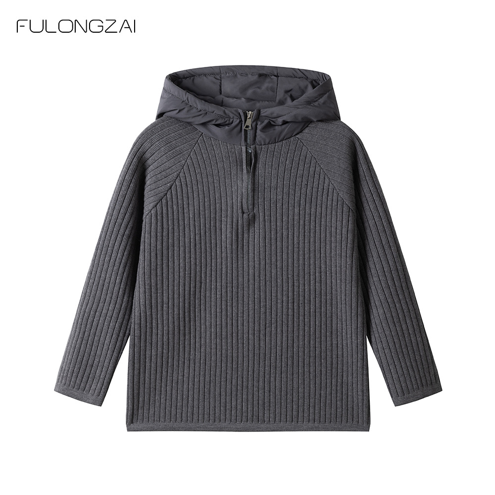 FULONGZAI 부모-자식 의류 남성, 여성, 중대형 어린이 2024 가을 겨울 신작 니트 스웨터 후드 재킷