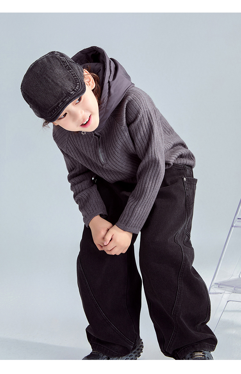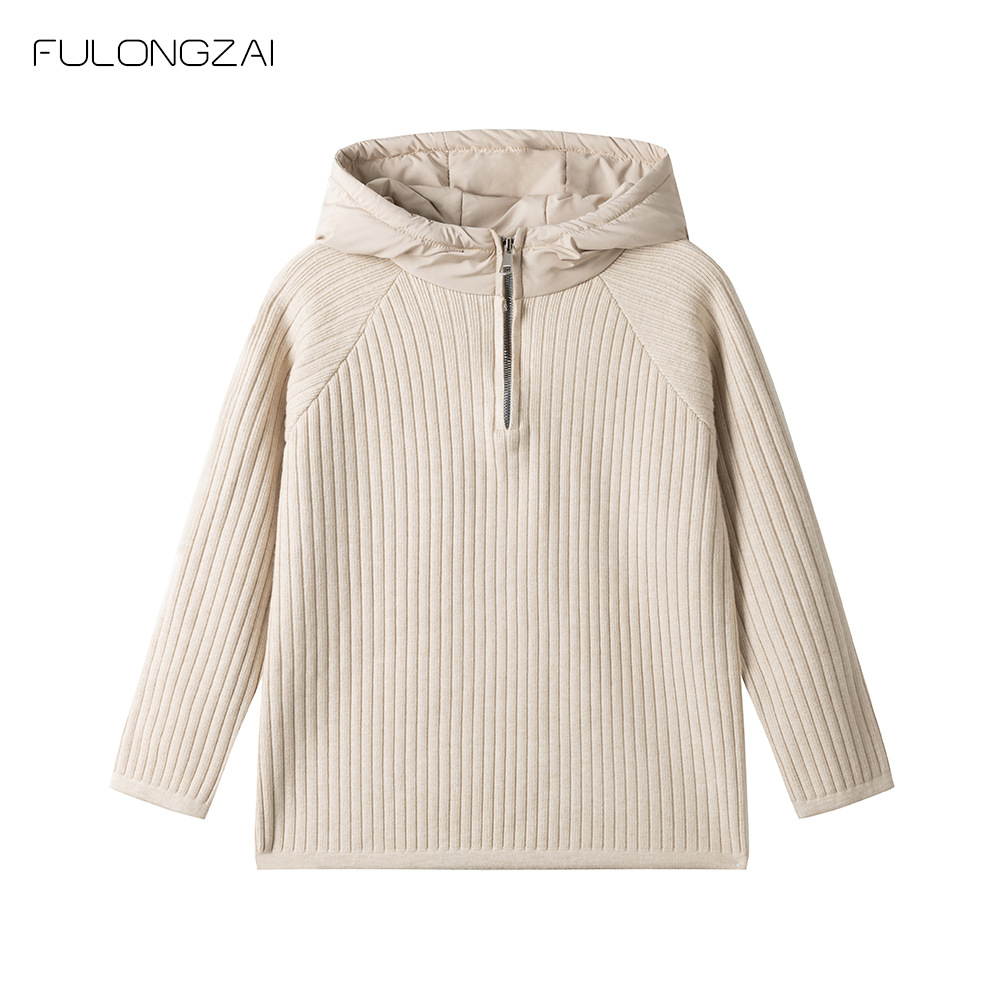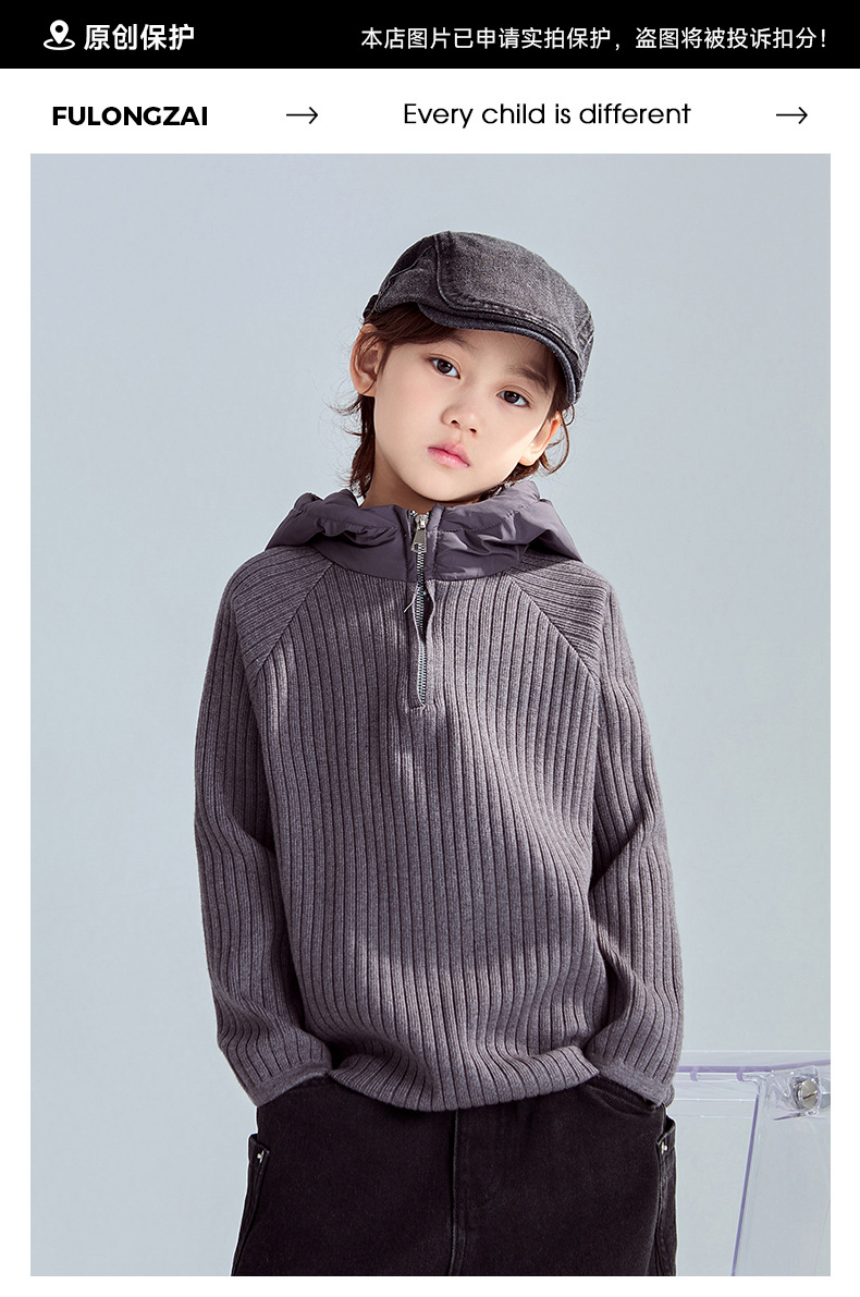 FULONGZAI 부모-자식 의류 남성, 여성, 중대형 어린이 2024 가을 겨울 신작 니트 스웨터 후드 재킷스토어 가기